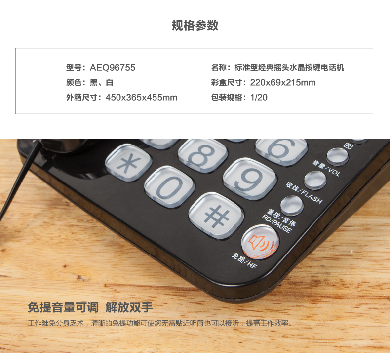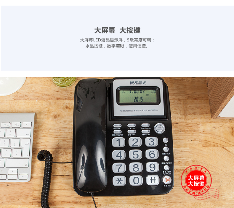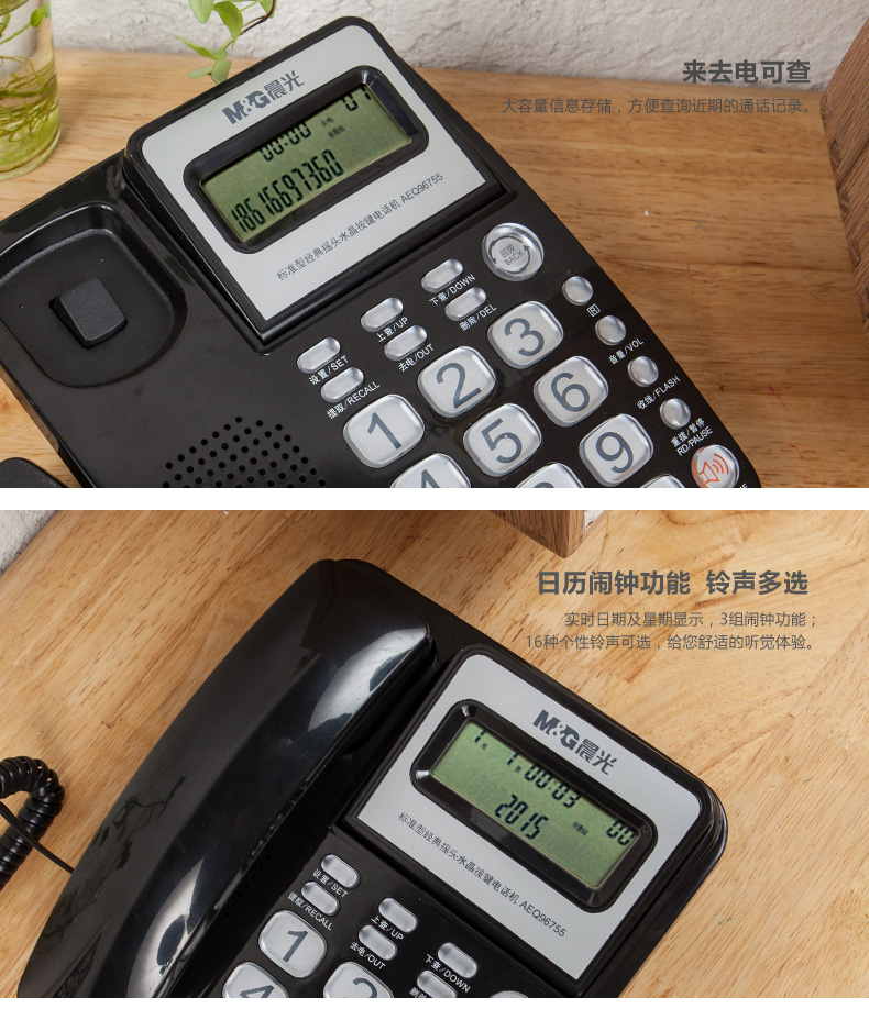 • 商品名称:晨光(M&G) AEQ96755 有线固定电话机座机固话座机 免电池 黑色