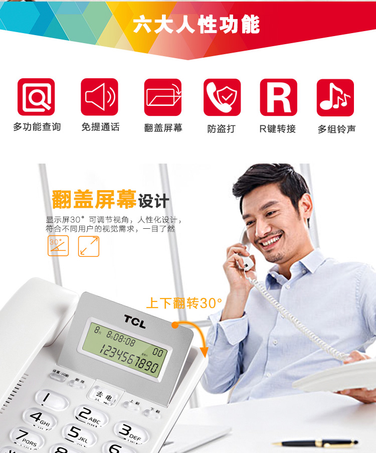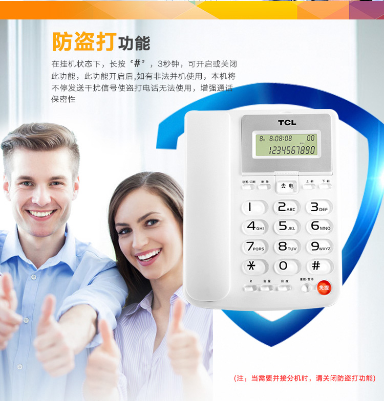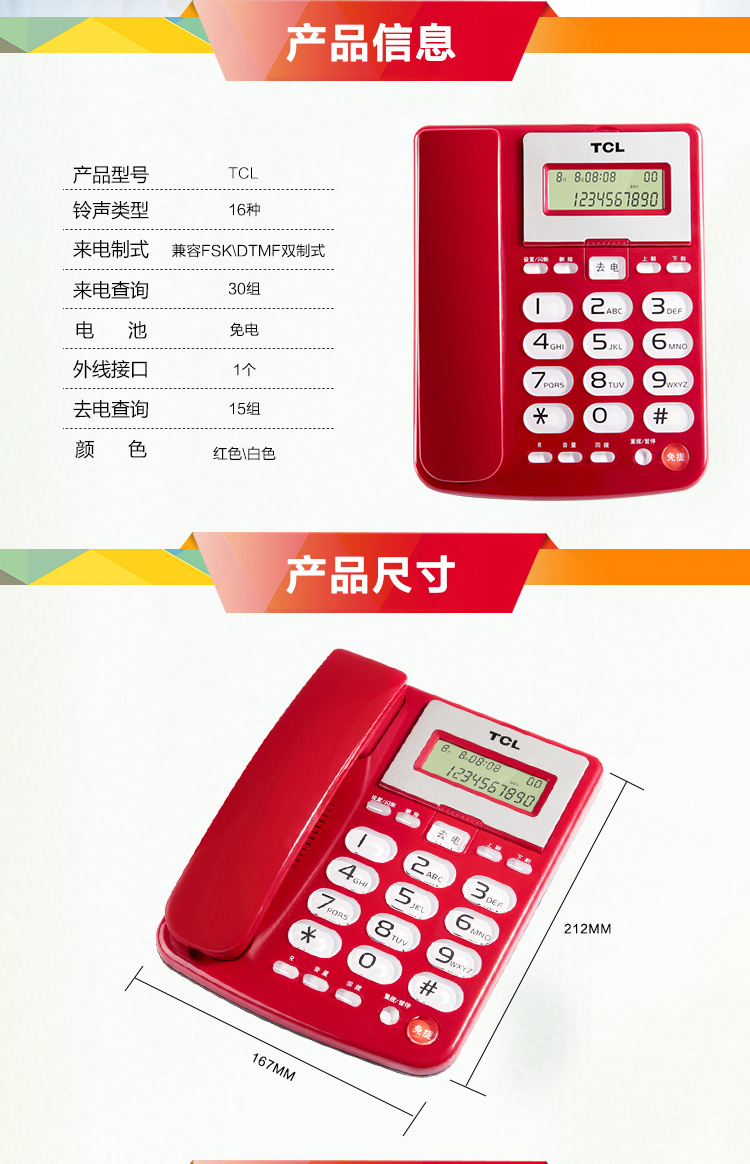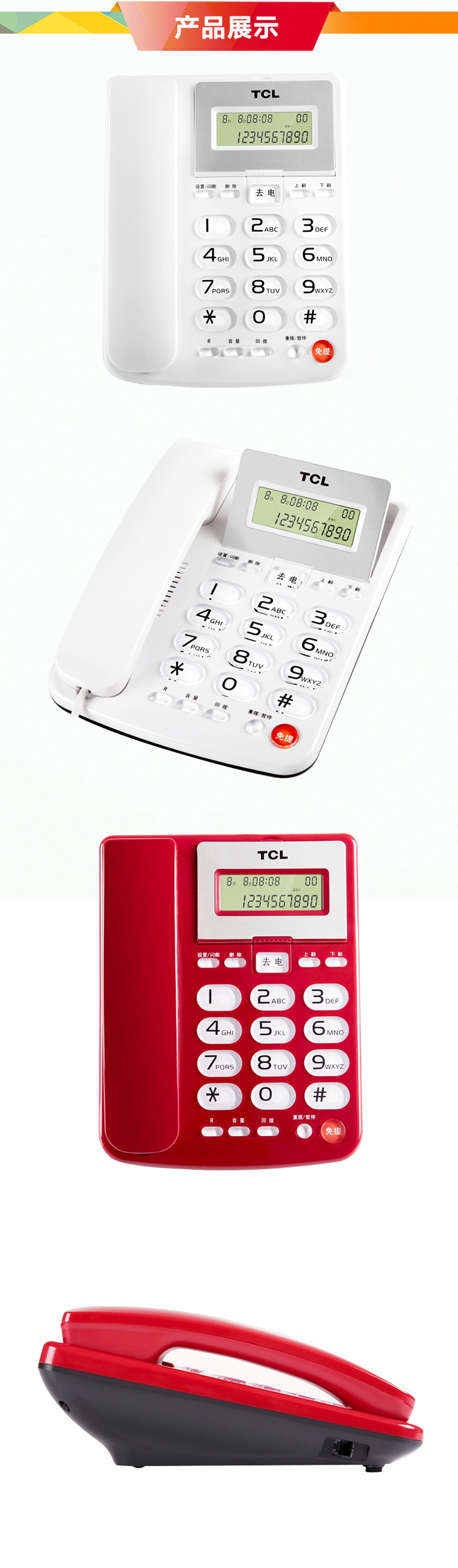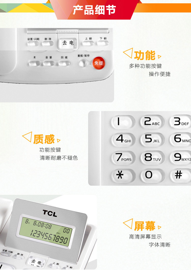 • 商品名称:TCL(TCL) HCD868(202)TSD 电话机座机 固定电话 办公家用 双接口 免电池 大按键 雅致白