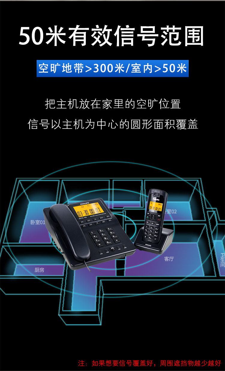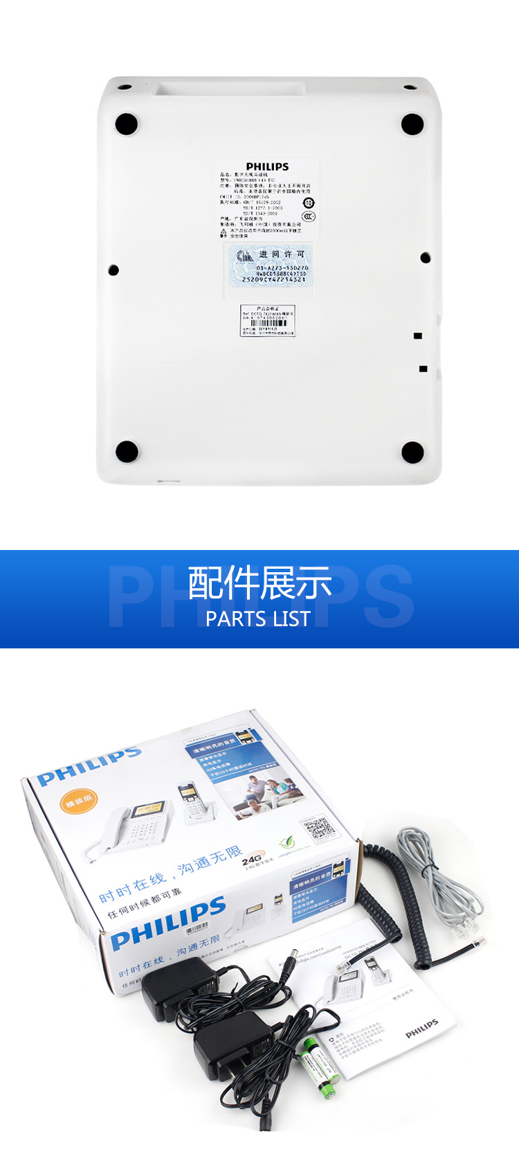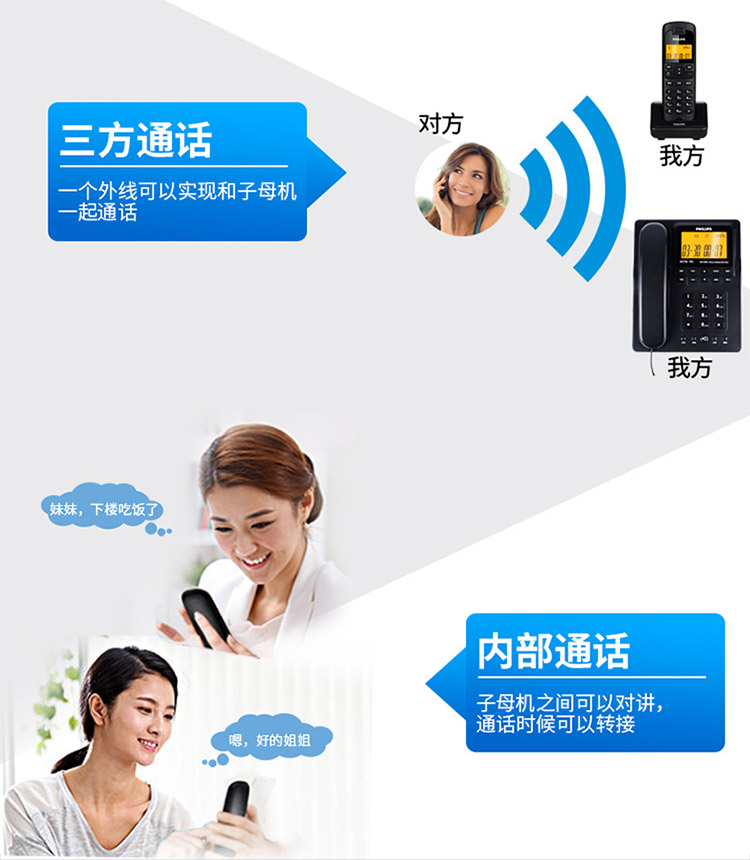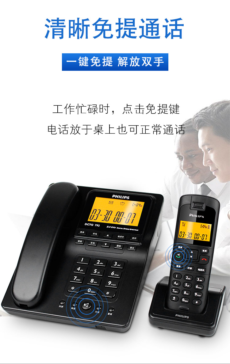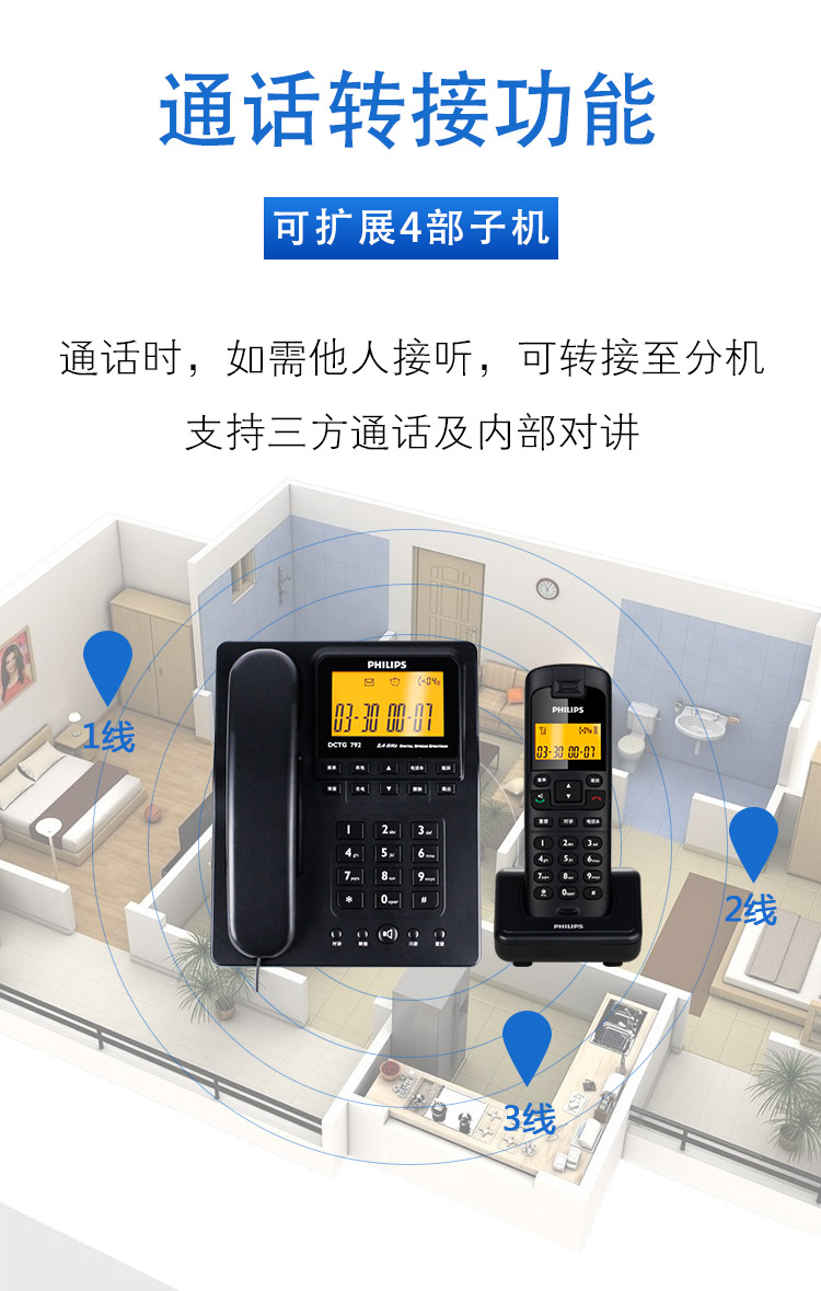 飞利浦(PHILIPS) DCTG792 无绳电话机 无线座机 子母机 待机持久 (一拖一蓝色)