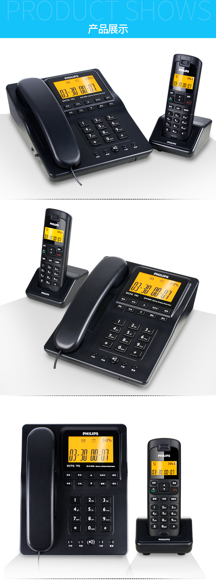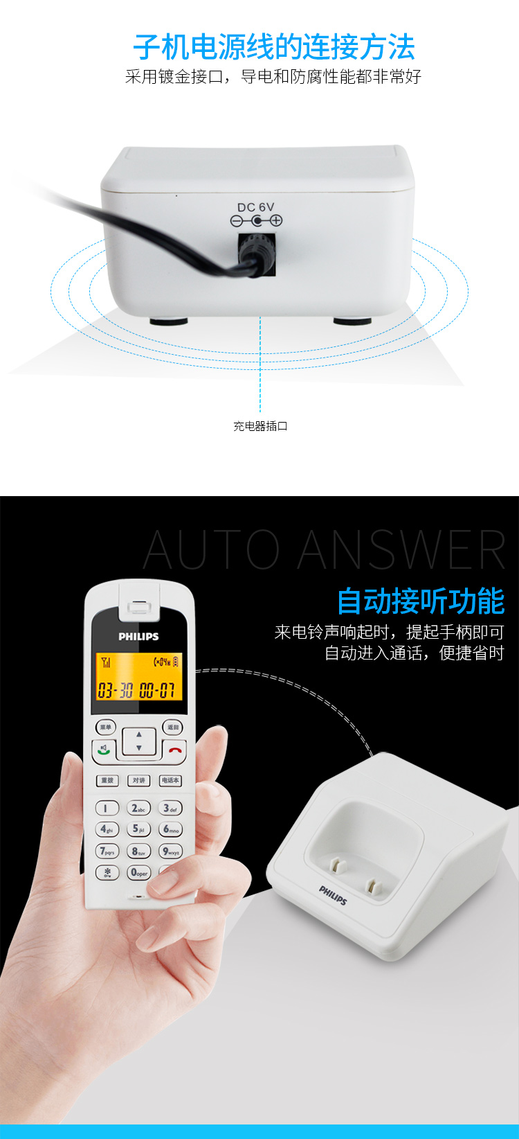 飞利浦(PHILIPS) DCTG792 无绳电话机 无线座机 子母机 待机持久 (一拖一白色)