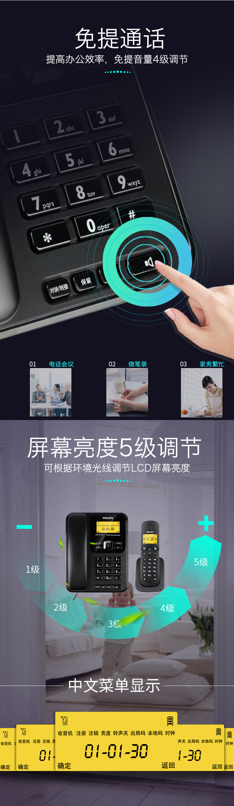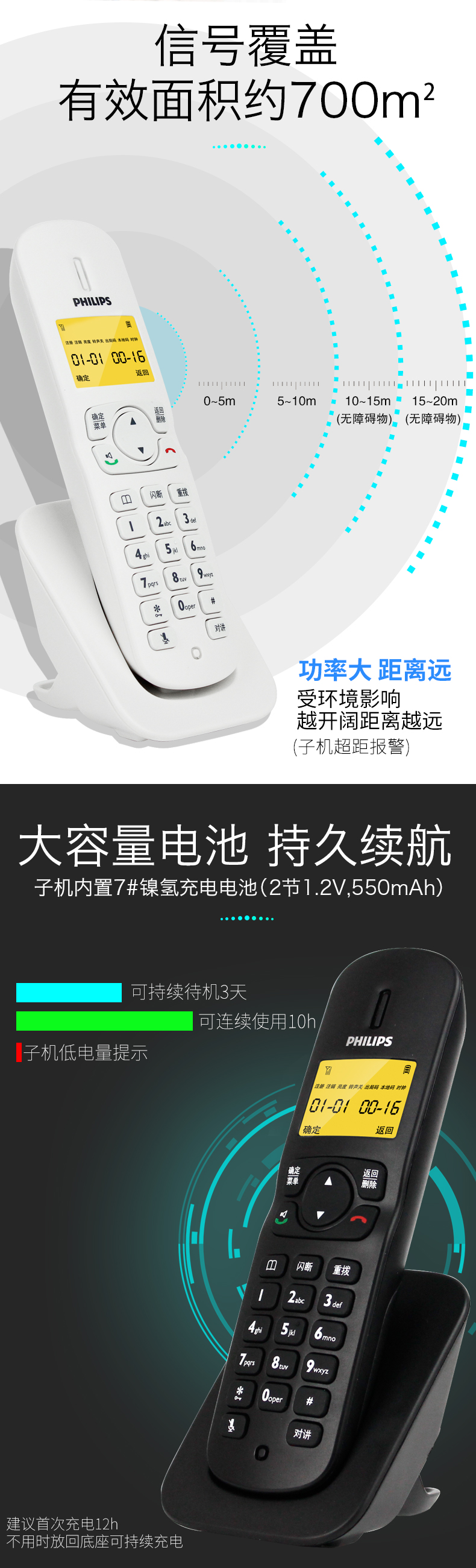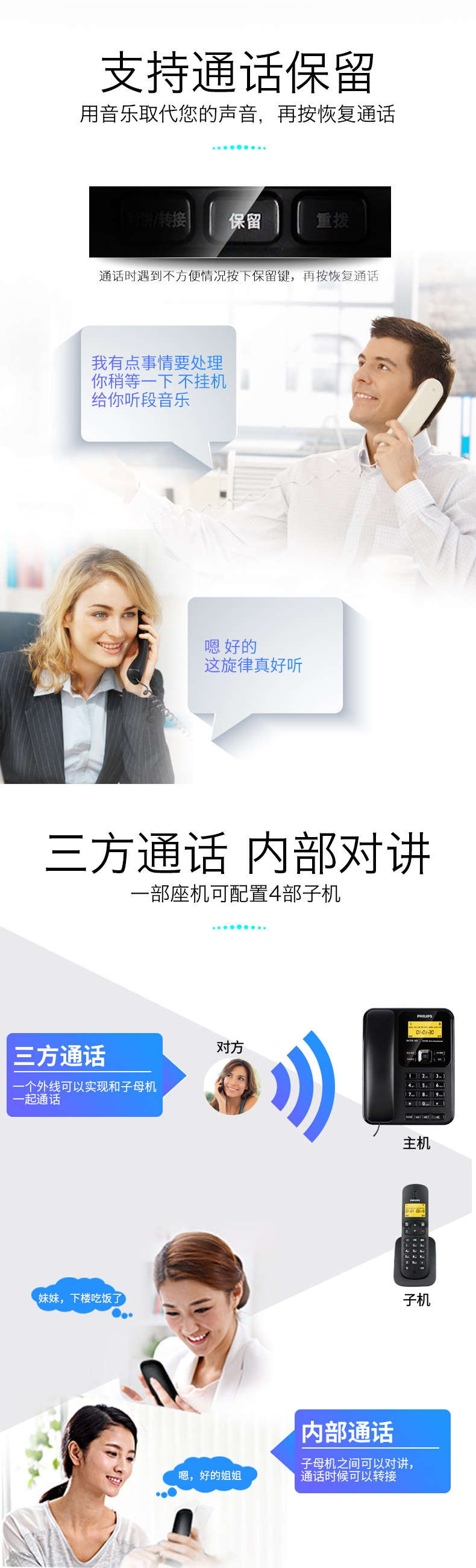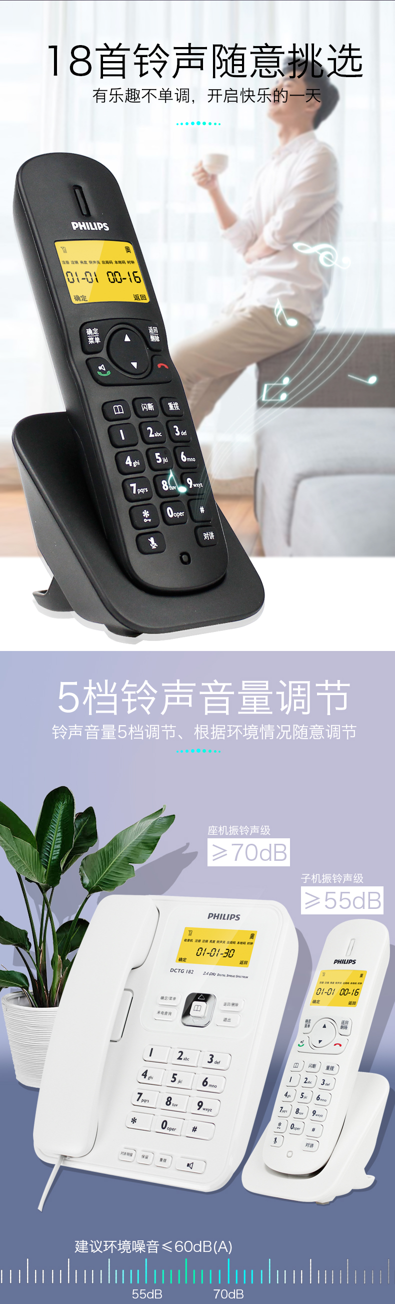• 商品名称:飞利浦(PHILIPS) DCTG182 无绳电话机 无线座机 子母机 可扩展子机 双免提 一拖一 (白色)