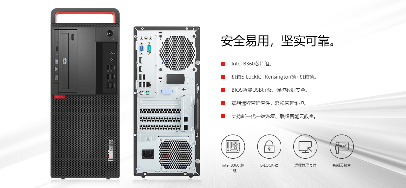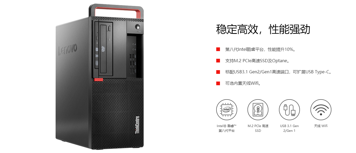 联想(Lenovo) M720t-D232 商用台式机电脑 ThinkCentre I5-9500/8G/1T+128G固态/无光驱/WIN10分体式电脑 (+23.8寸显示器)