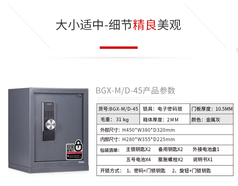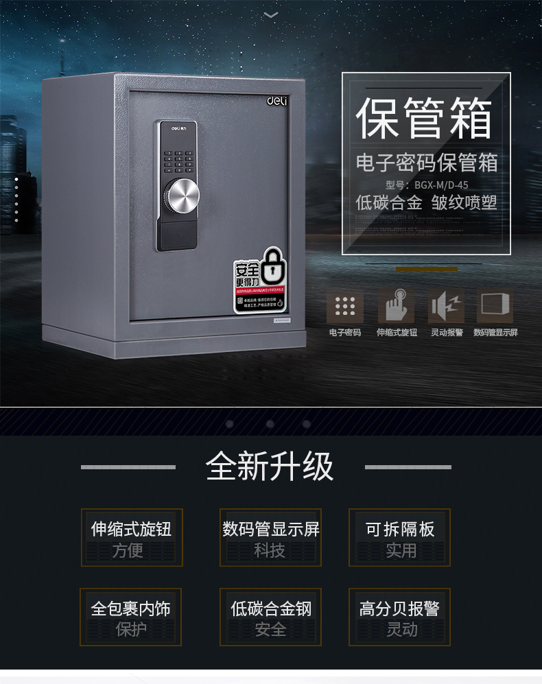 • 商品名称:得力(deli)3645A 保管箱 电子密码防盗 保险箱 保险柜 家用办公保险柜 高70cm