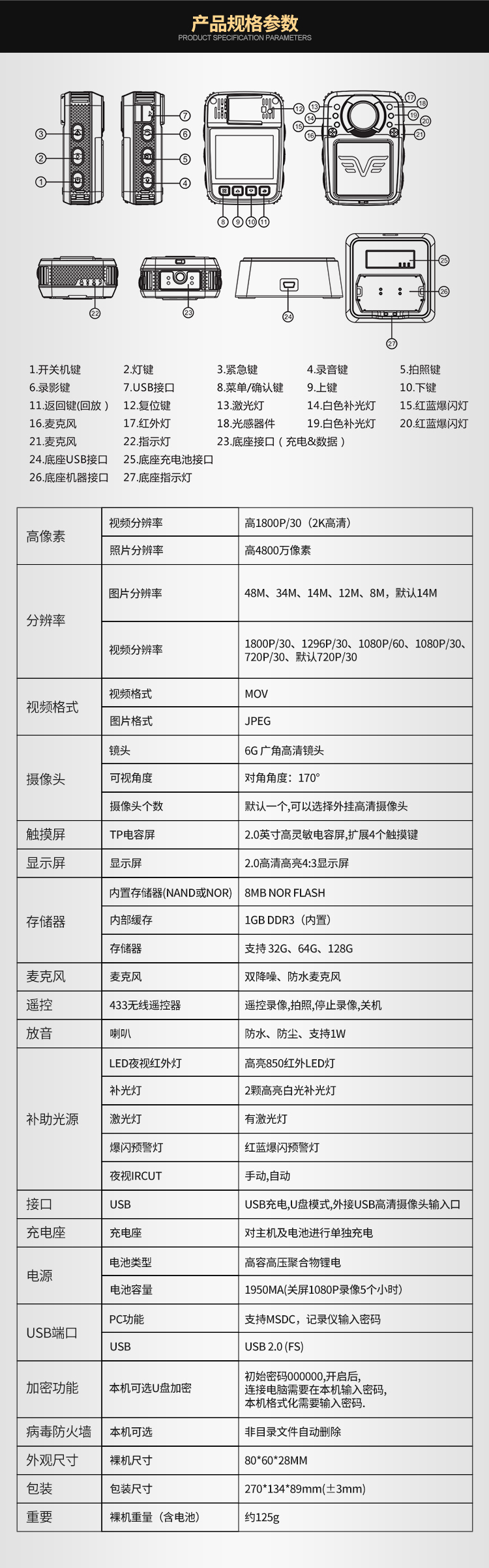 • 商品名称:联想(Lenovo)DSJ-8H 执法记录仪触摸屏遥控版2K(1800P)高清红外夜视现场记录仪 32G