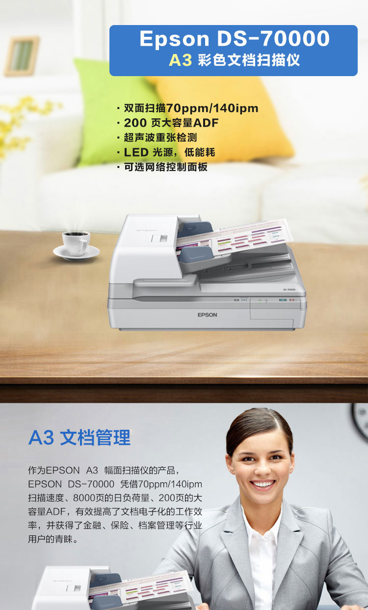 • 商品名称:爱普生(EPSON) DS-70000 A3高速彩色文档扫描仪