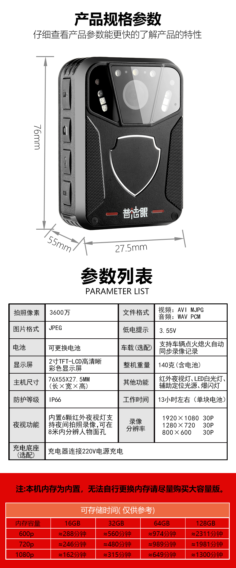 • 商品名称:普法眼 DSJ-PF8 执法记录仪 黑色 内置32G