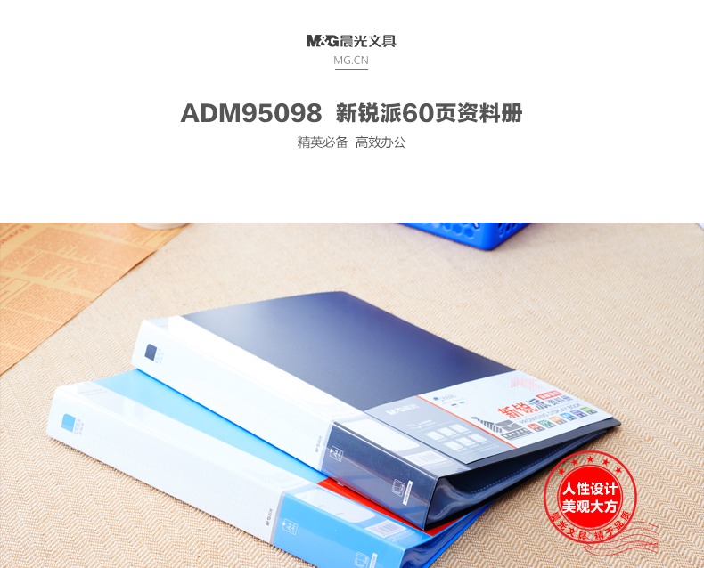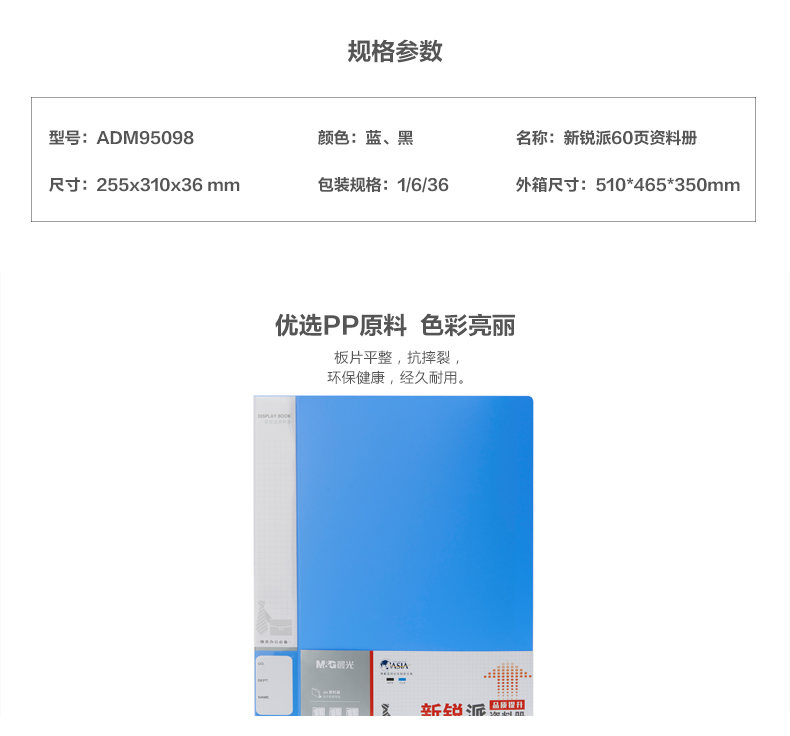 • 商品名称:晨光(M&G)ADM95098 新锐派资料册塑料文件册资料册 60页 蓝色