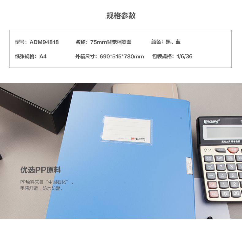 • 商品名称:晨光(M&G)ADM94818B 档案盒75mm 蓝色