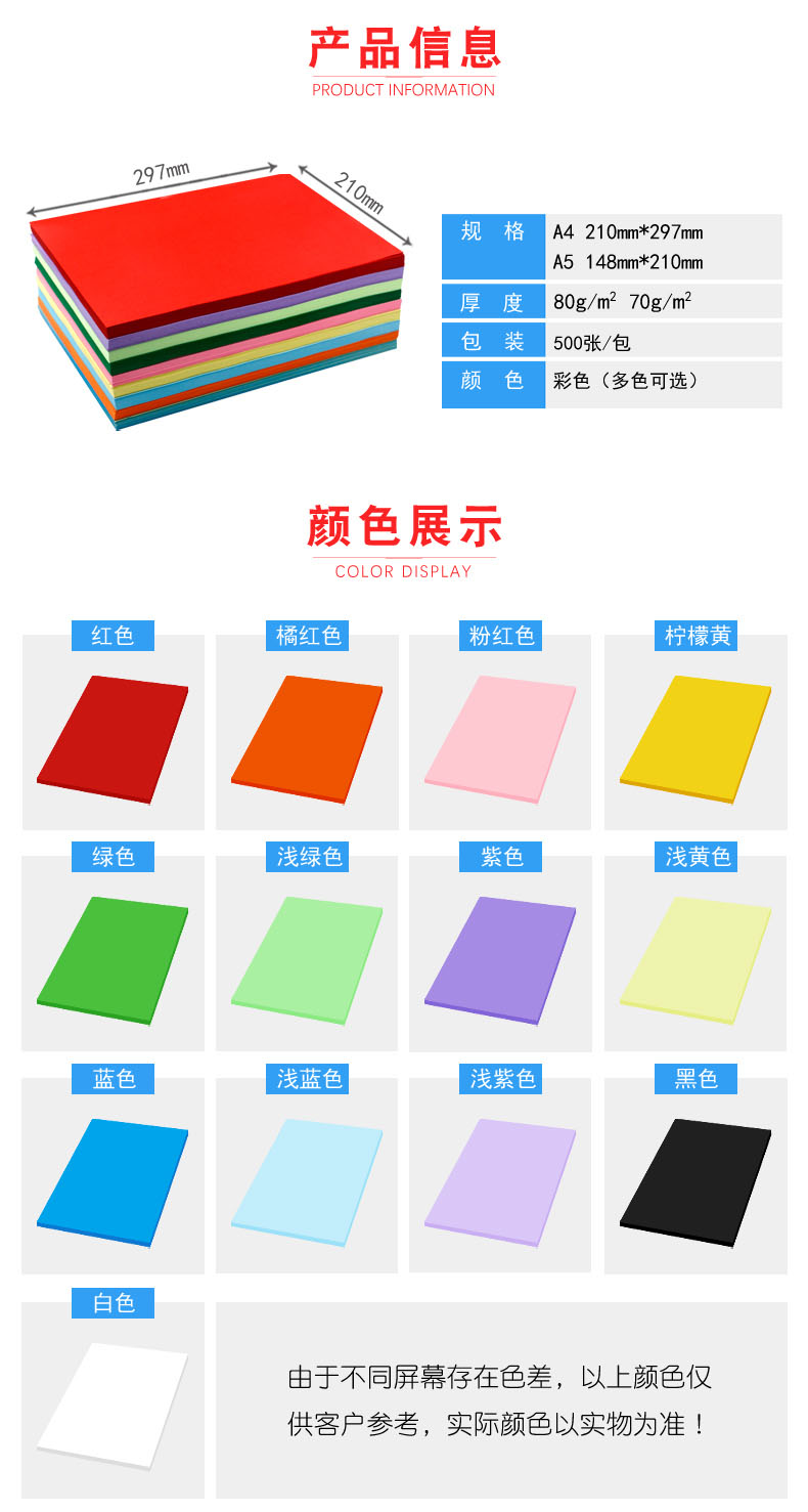 • 商品名称:安兴 A3彩色打印纸复印纸 大红色70g 500张 (A3大红色-500张)