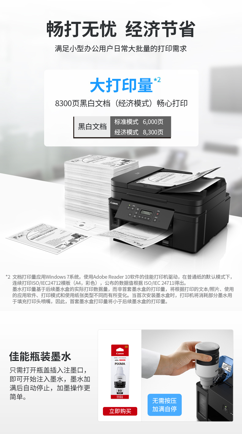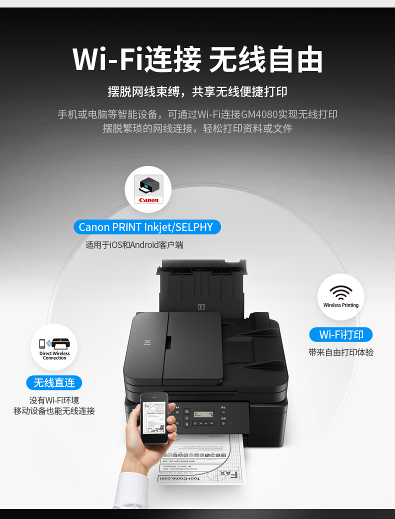 • 商品名称:佳能(Canon)GM4080 A4黑白喷墨多功能一体机 标配