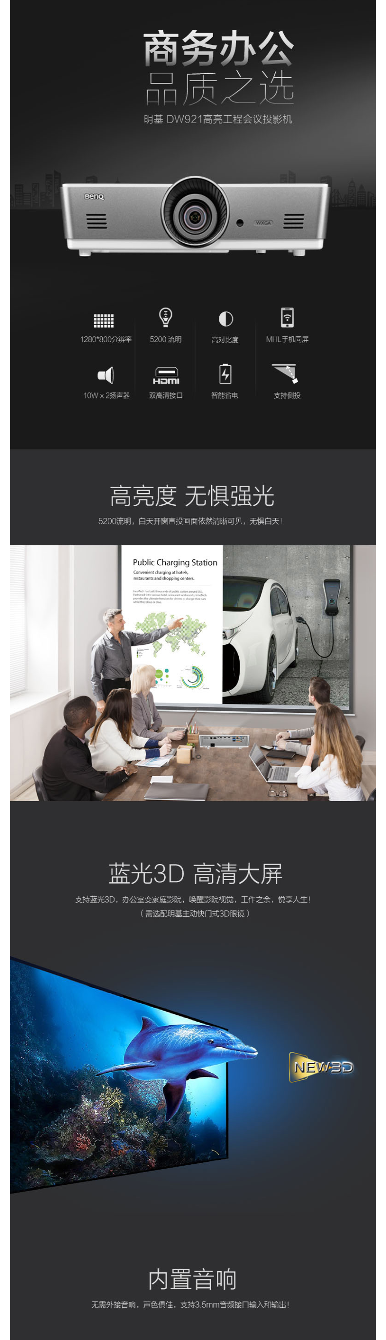 • 商品名称:明基(BenQ)DW921 投影仪 投影机办公(高清宽屏 5200流明 1.6x变焦 左右梯形校正)
