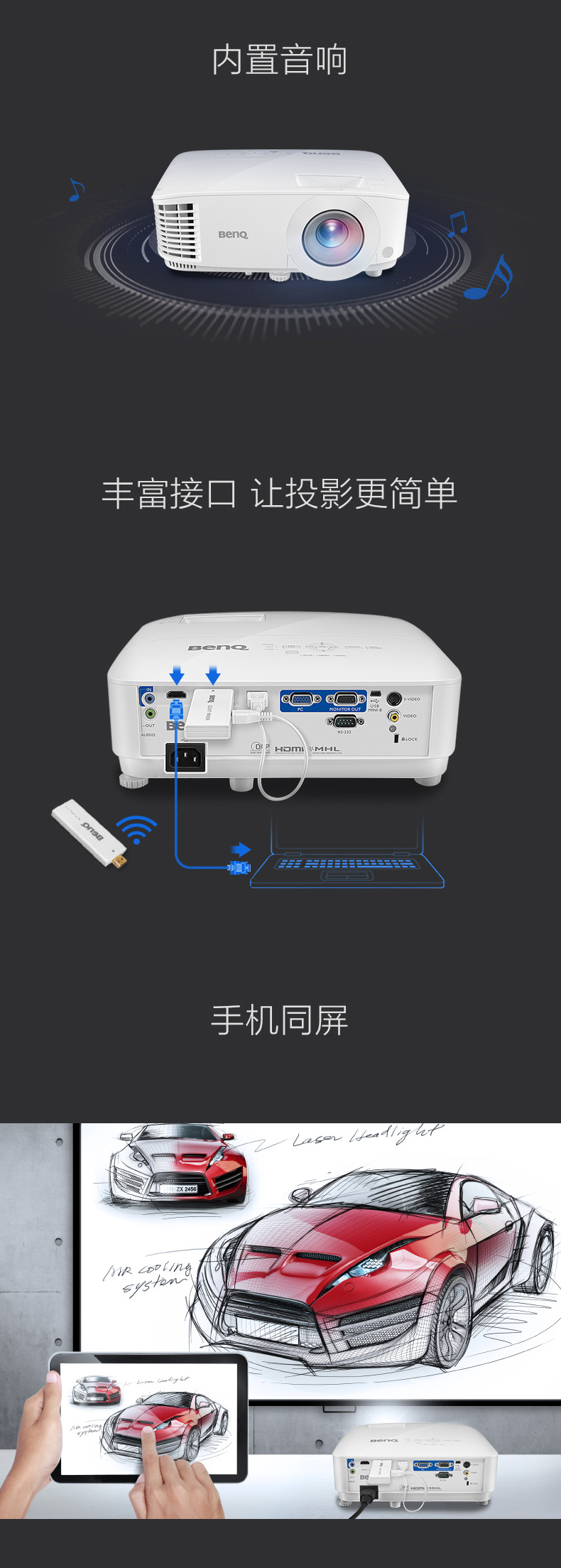 • 商品名称:明基(BenQ)MW612 投影仪 投影机办公(高清宽屏 4000流明 HDMI*2 手机同屏 中大型会议室)