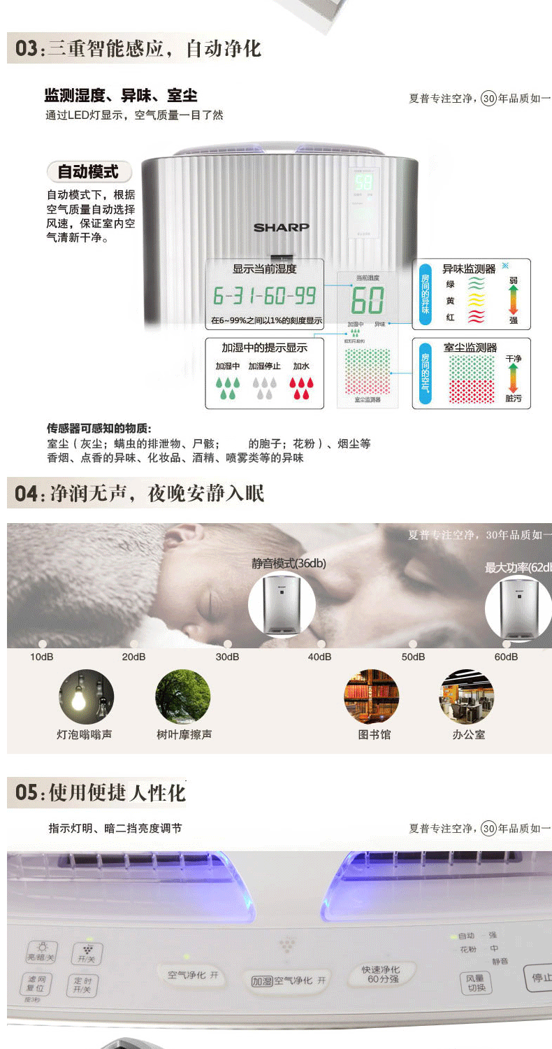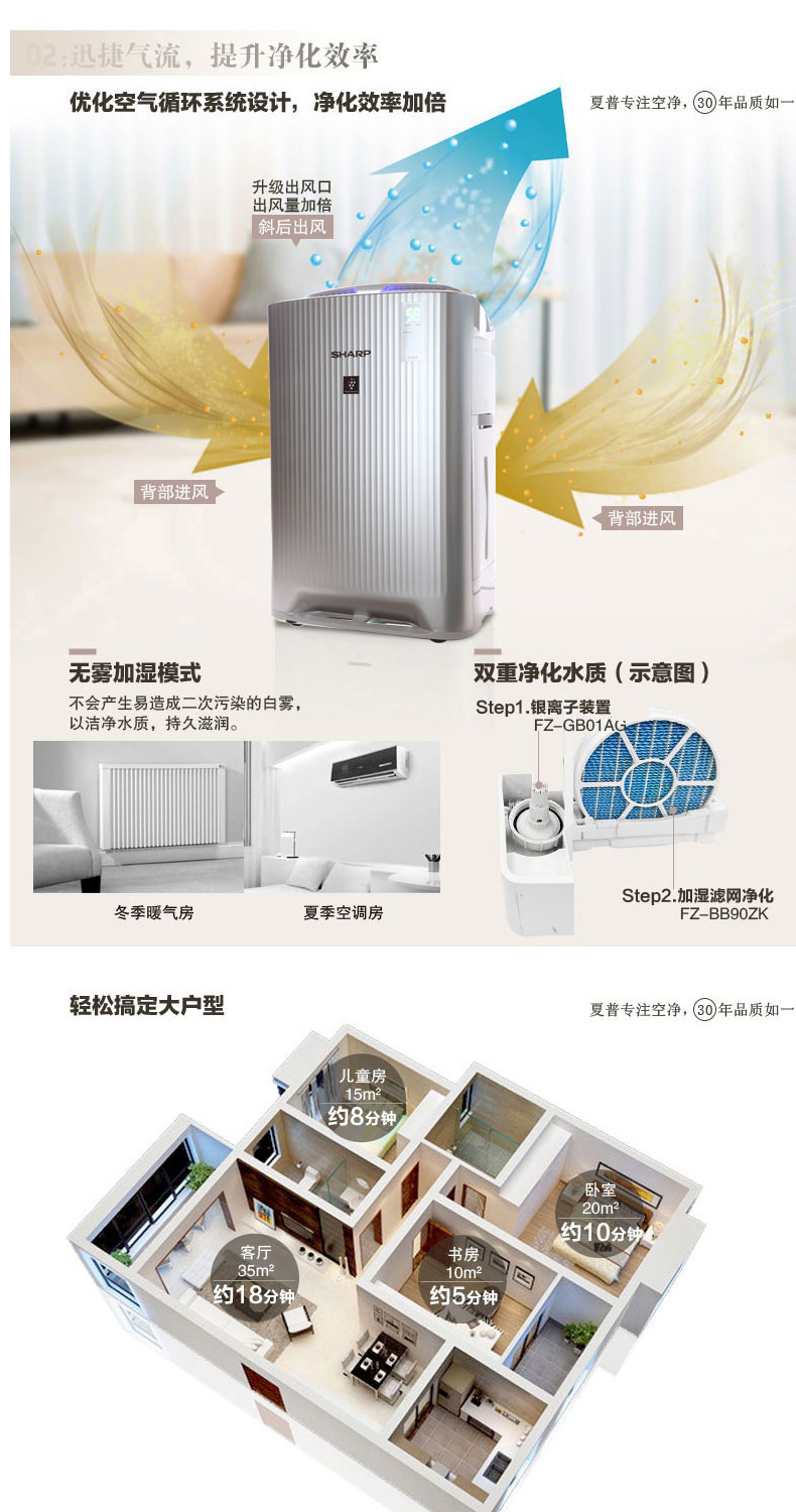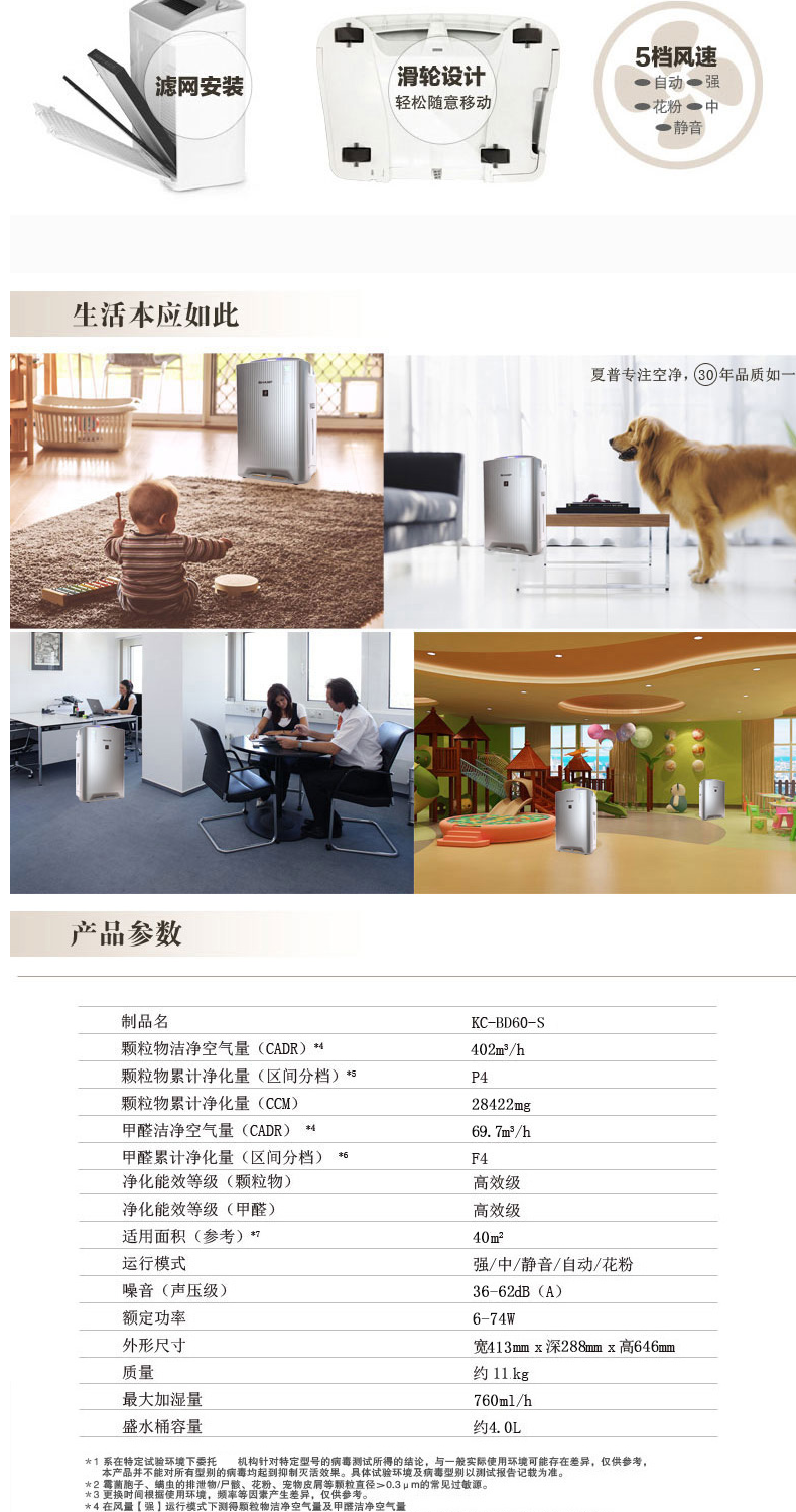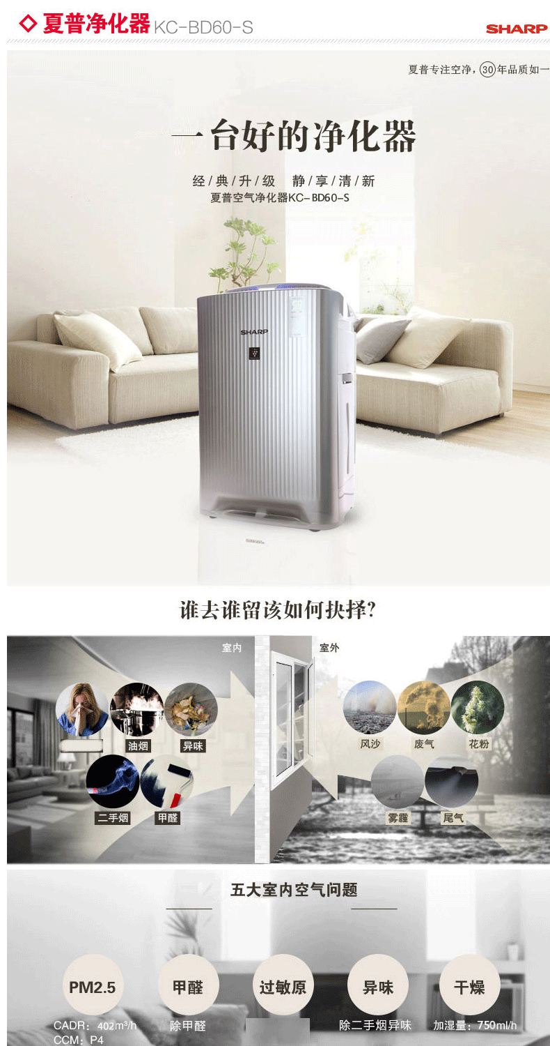 • 商品名称:夏普(SHARP)KC-BD60-S 空气净化器 家用氧吧加湿除甲醛PM2.5烟尘