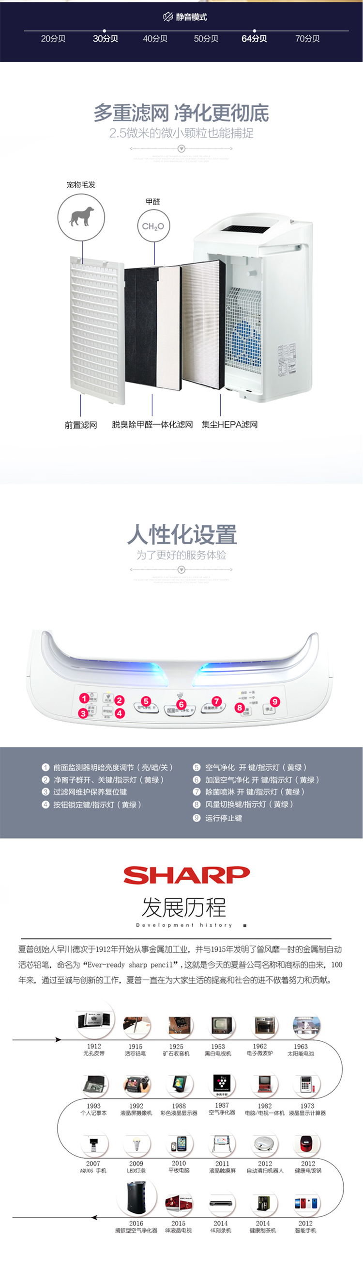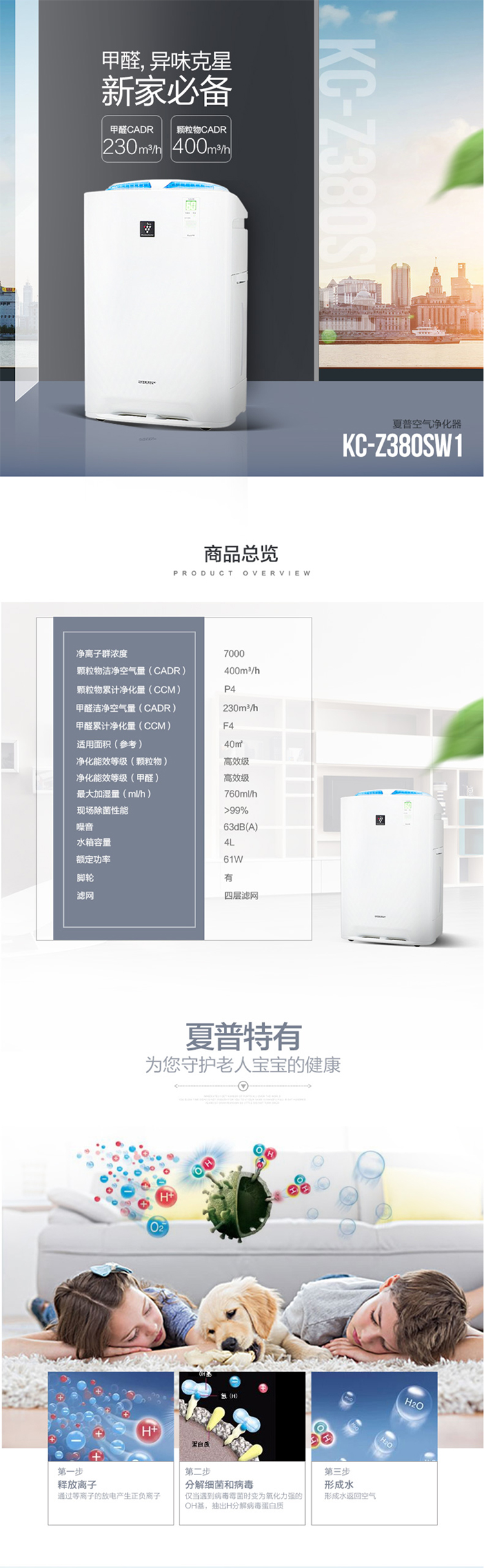 • 商品名称:夏普(SHARP) KC-Z380S-W1 空气净化器 除甲醛静音除菌家用除尘 消毒/加湿/净化三位一体