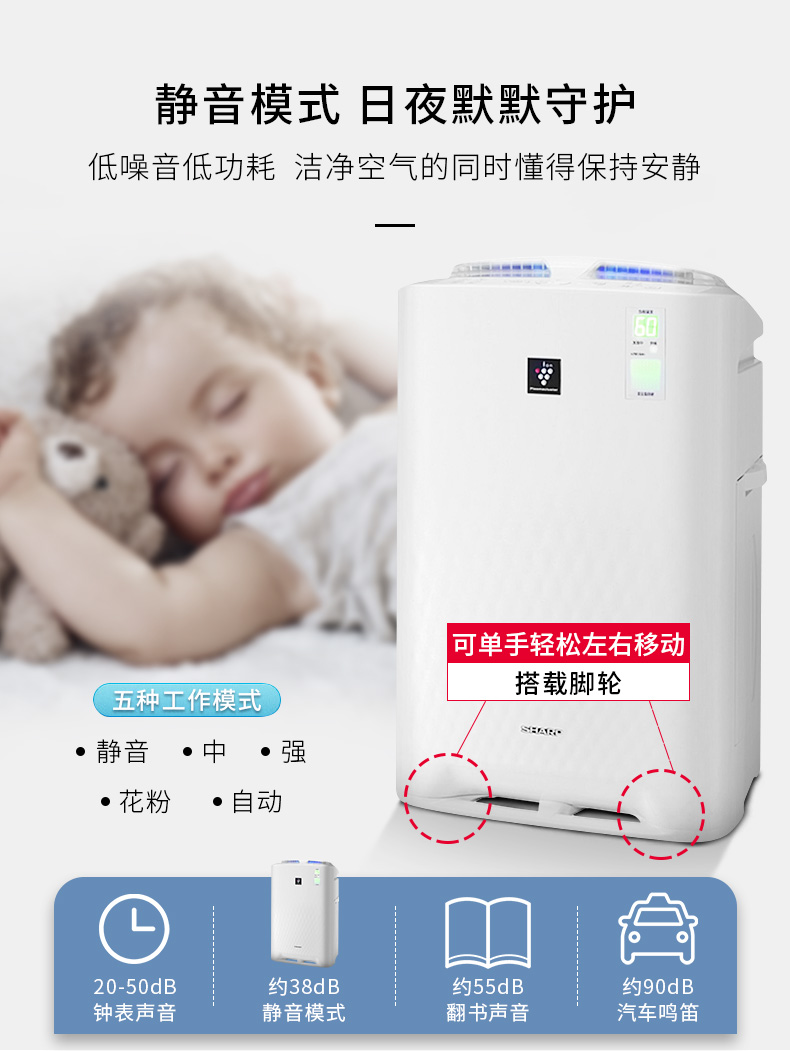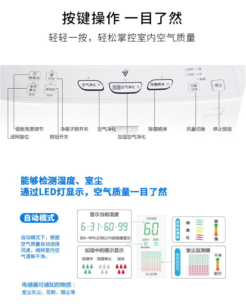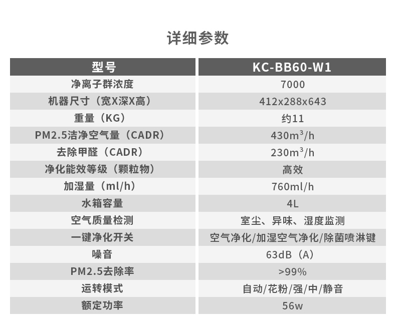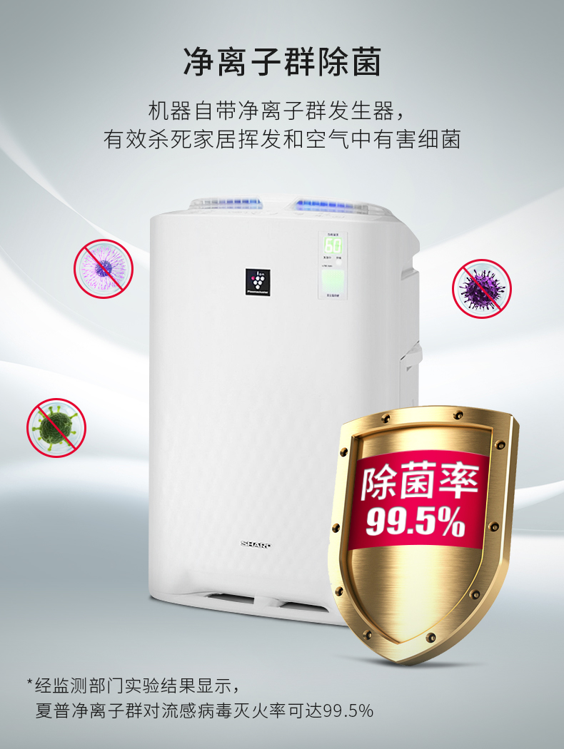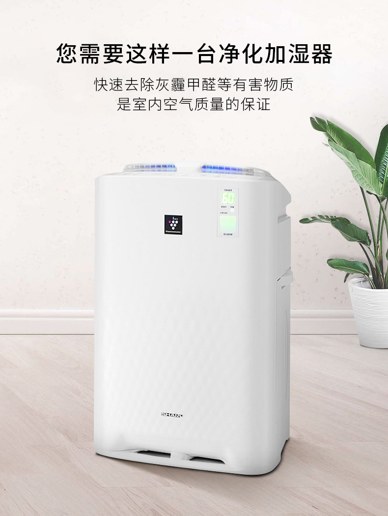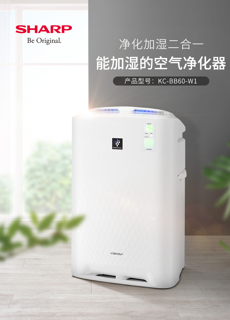 • 商品名称:夏普(SHARP)KC-BB60-W1 空气净化器 大房净化除菌加湿 空气质量实时监控 清除甲醛雾霾