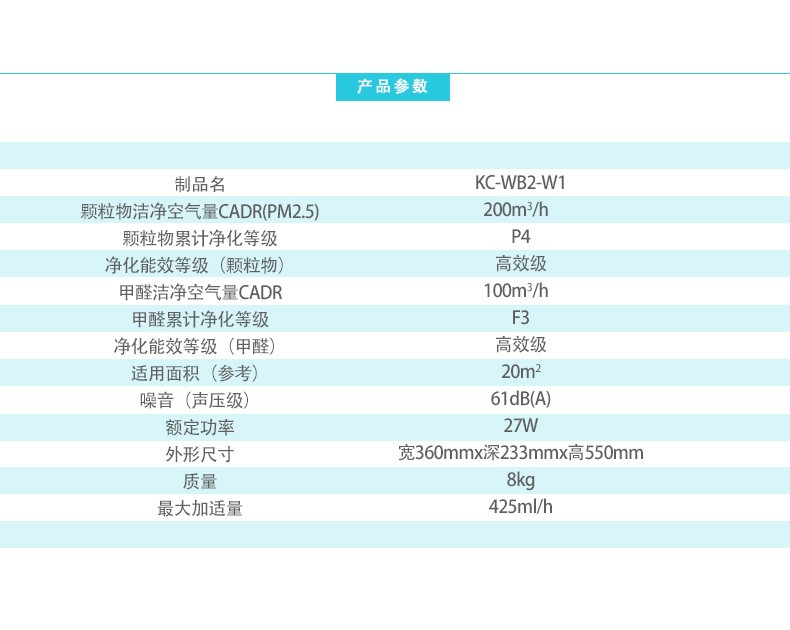 • 商品名称:夏普(SHARP)KC-WB2-W1 空气净化器家用加湿器除霾除甲醛净化机