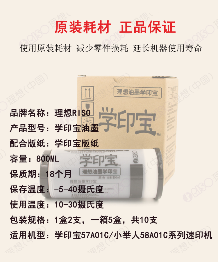 • 商品名称:理想(RISO) 学印宝黑油墨 适用小举人58A01C/学印宝57A01C;800ml/筒