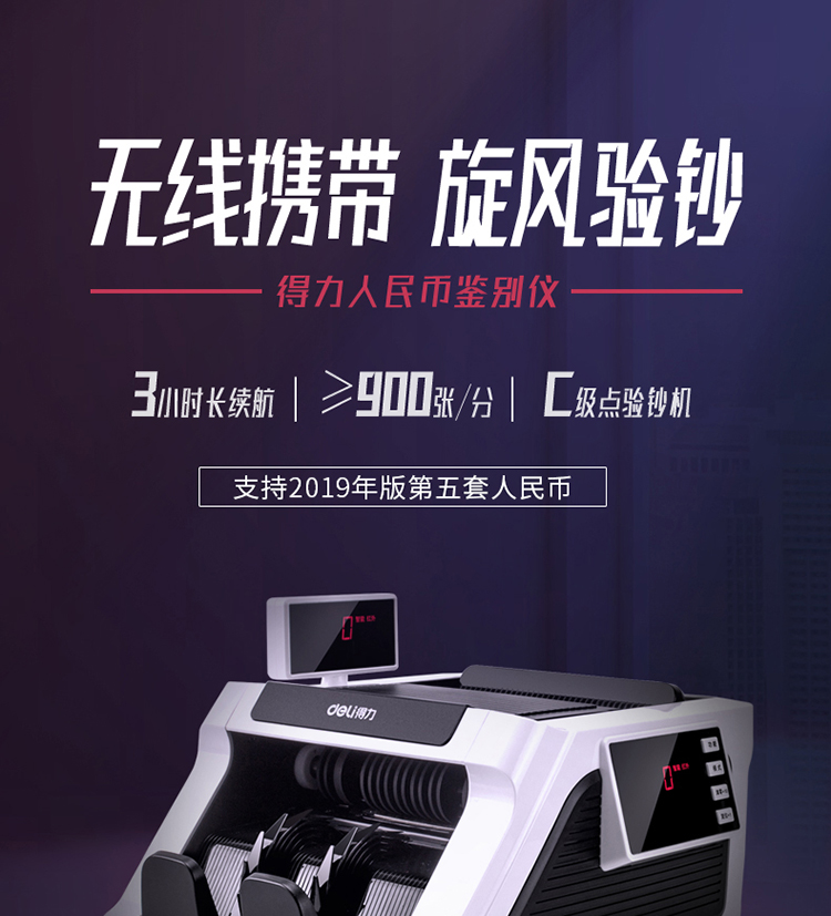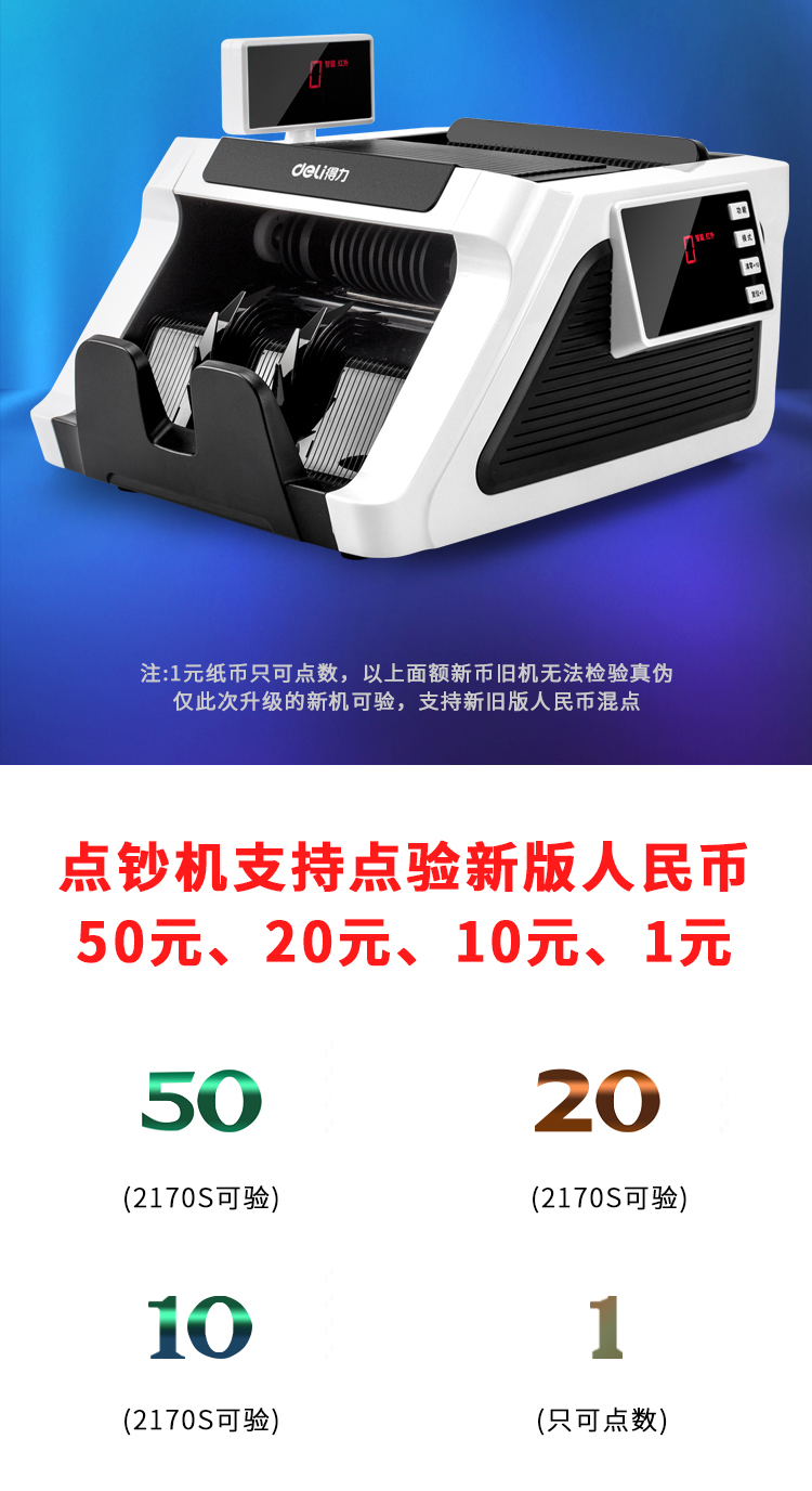 • 商品名称:得力(deli)2170 2019新版人民币验钞机点钞机可充电便携式