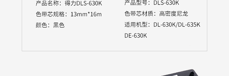 • 商品名称:得力(deli)DLS-630K 针式打印机黑色色带 16m带芯(适用DE-630K、DL-630K)