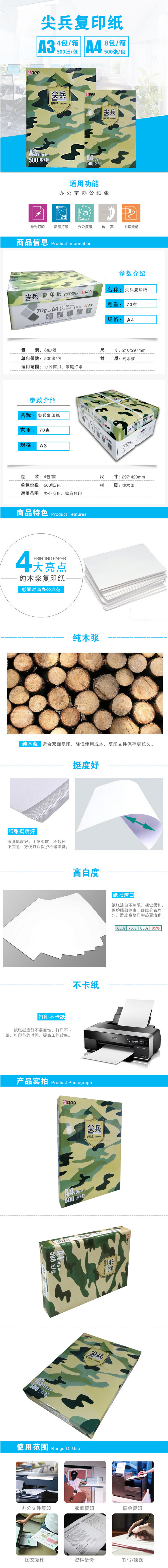 • 商品名称:尖兵 A4复印纸 70g 500张/包 8包/箱