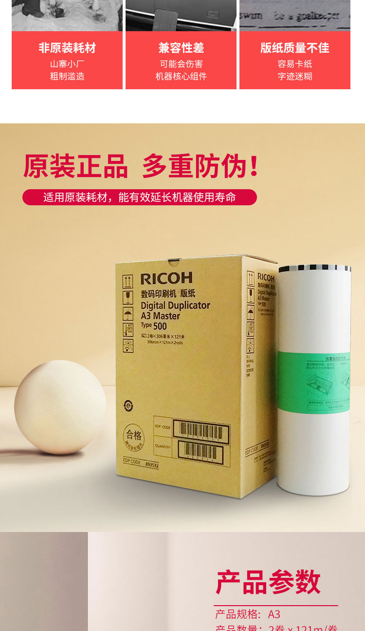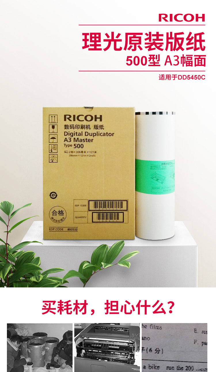 • 商品名称:理光(Ricoh) 500型(122m/卷*2卷) A3版纸 适用于DD5450C