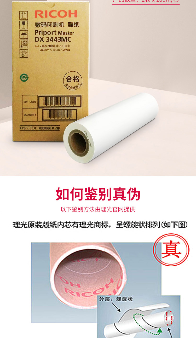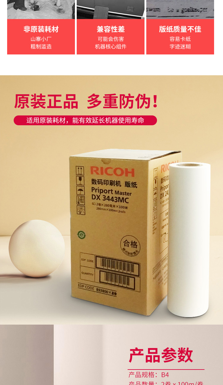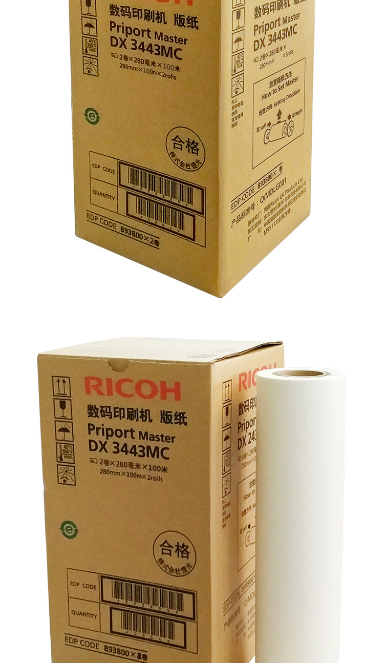 • 商品名称:理光(Ricoh)DX3443MC(100m/卷*2卷) 版纸 适用于DX3443C/DD3344C