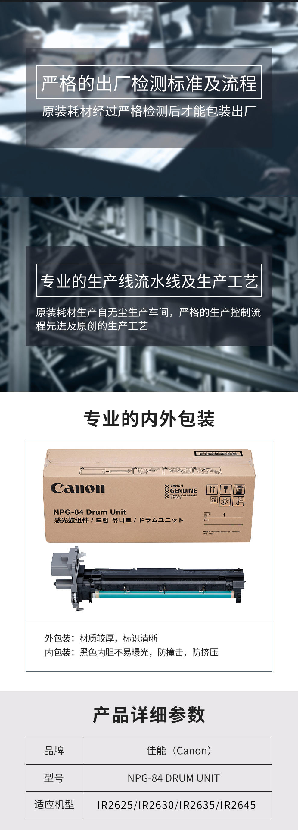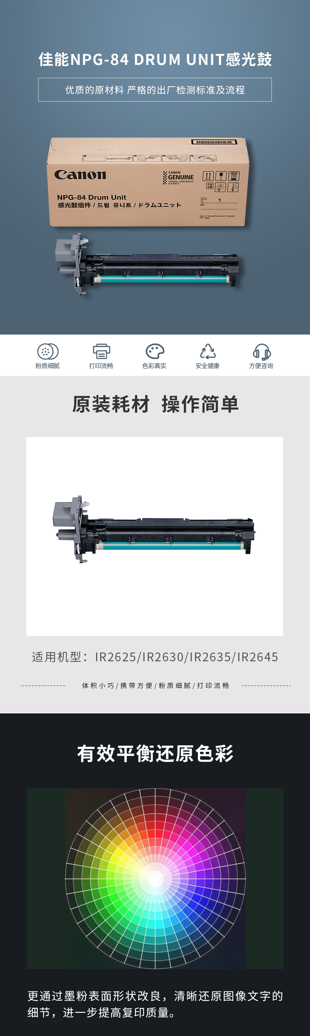 • 商品名称:佳能(Canon)NPG-84 原装感光鼓组件 适用佳能iR2625/iR2630/iR2635/iR2645