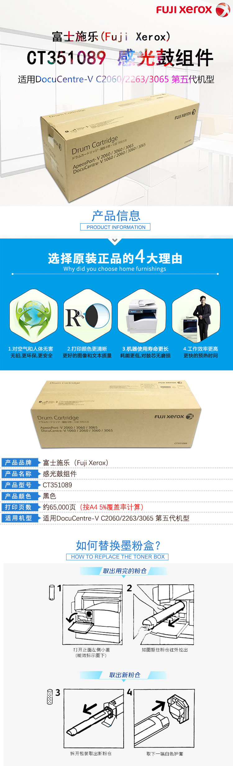 • 商品名称:富士施乐(Fuji Xerox) CT351061 黑色感光鼓组件 适用施乐V4070/5070系列 五代 约65000页