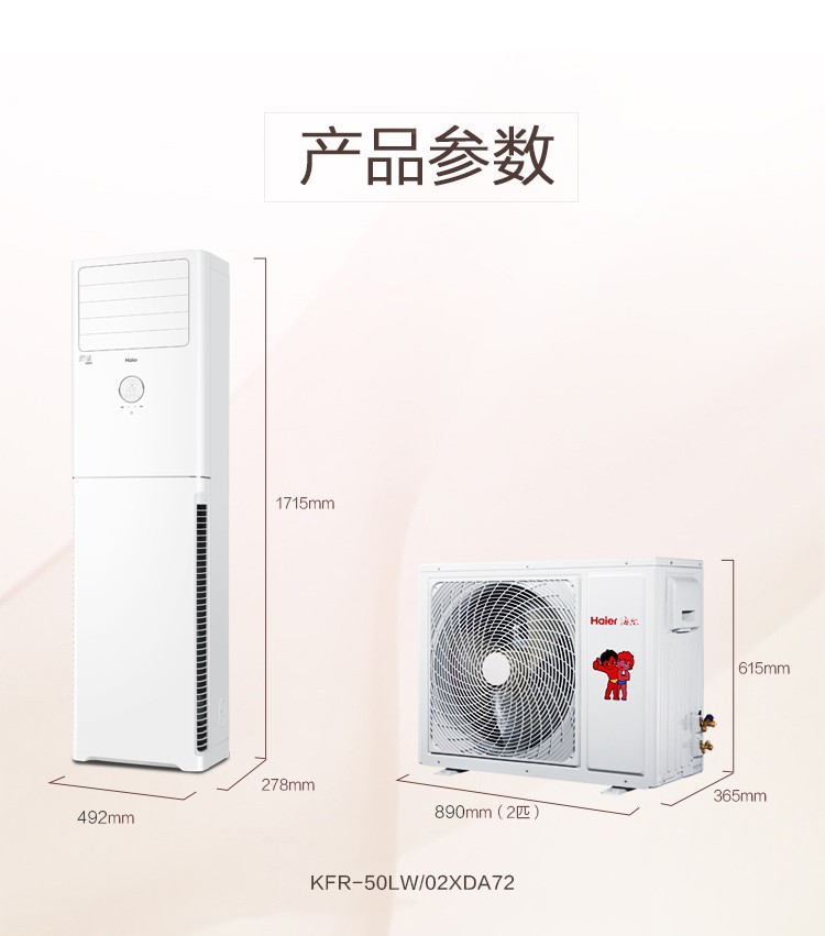 • 商品名称:海尔(Haier)KFR-72LW/02XDA72 3匹定频柜式空调 冷暖 二级能效 白色