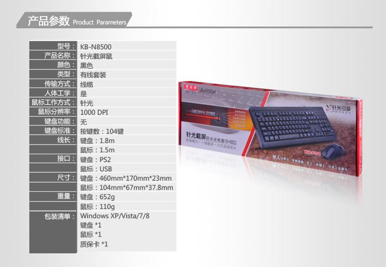 • 商品名称:双飞燕(A4TECH) KB-N8500 键鼠套装 有线 鼠标USB接口+键盘PS2接口 黑色