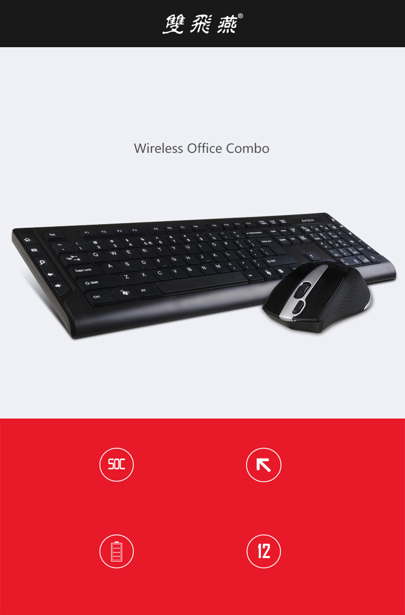 • 商品名称:双飞燕(A4TECH) 6300F 键鼠套装 无线 USB接口 黑色