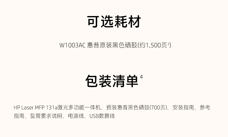 • 商品名称:惠普(HP) Laser MFP 131a A4黑白激光多功能一体机 打印复印扫描