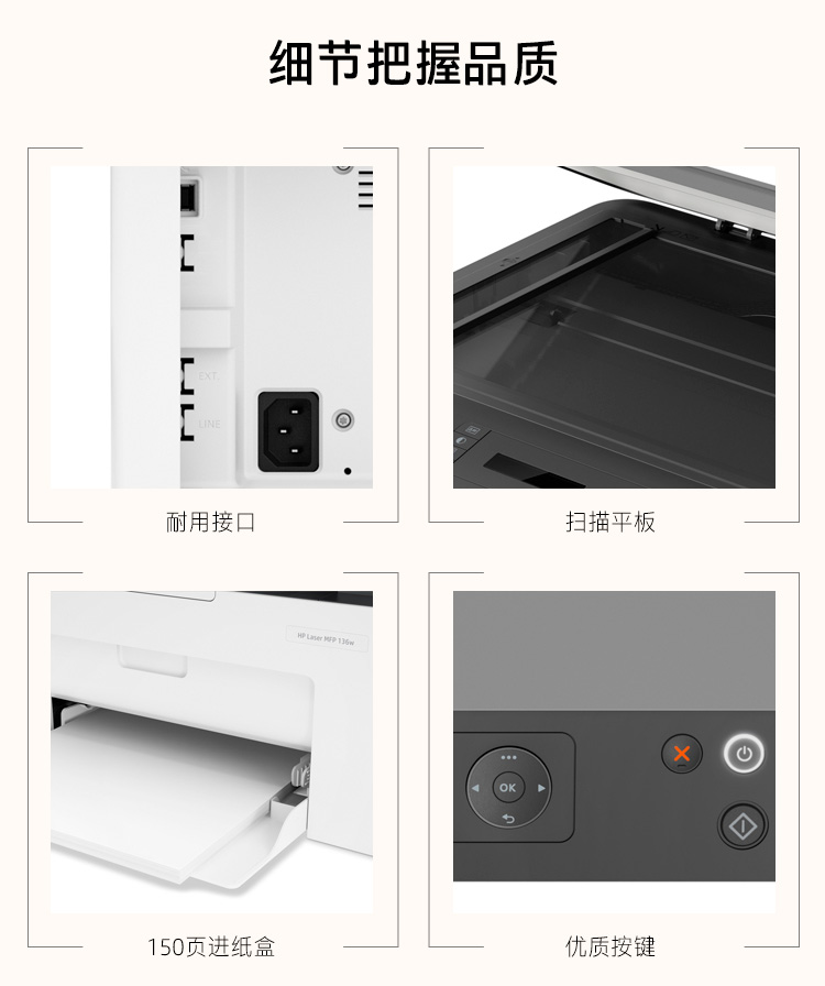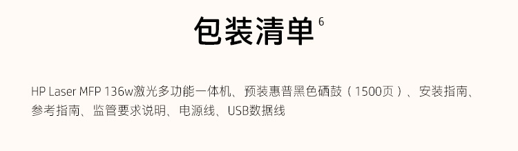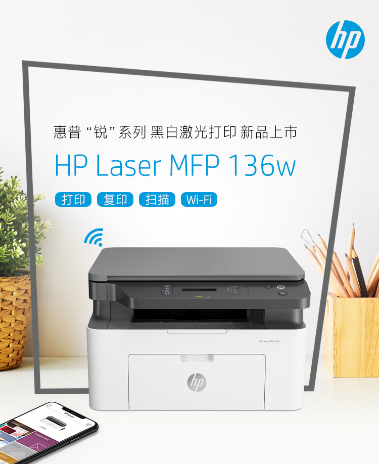 • 商品名称:惠普 (HP) 136w 锐系列A4黑白激光多功能一体机 三合一 打印复印扫描