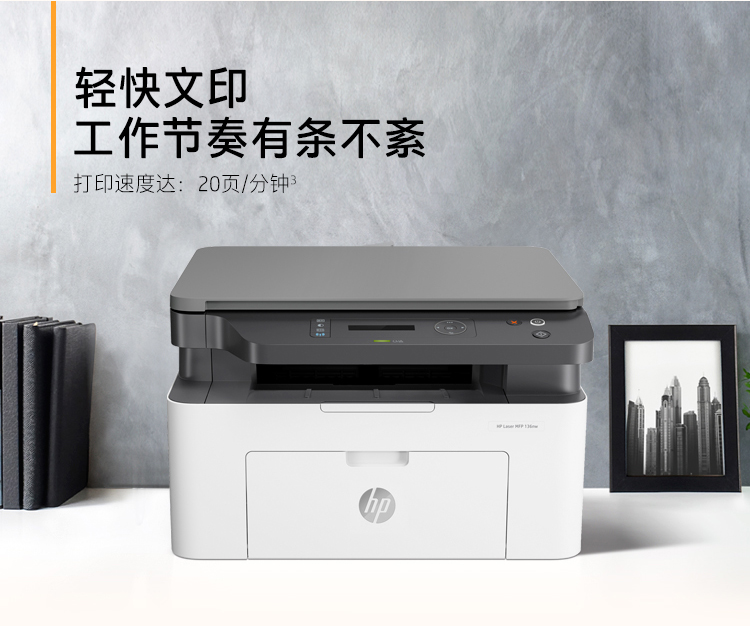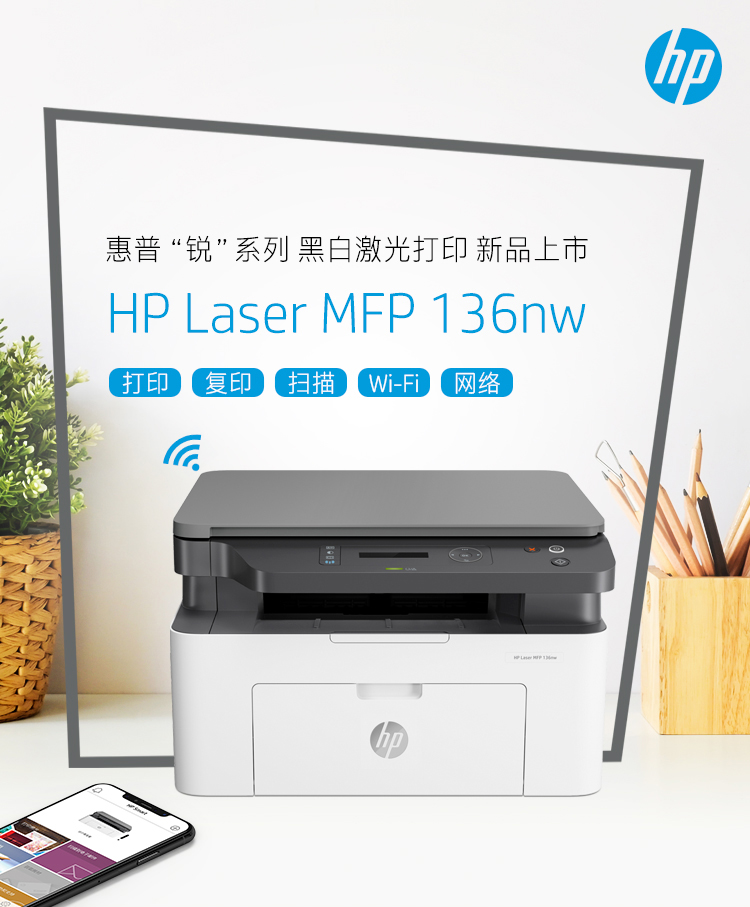 • 商品名称:惠普 (HP) 136nw 锐系列A4黑白激光多功能一体机 三合一 打印复印扫描