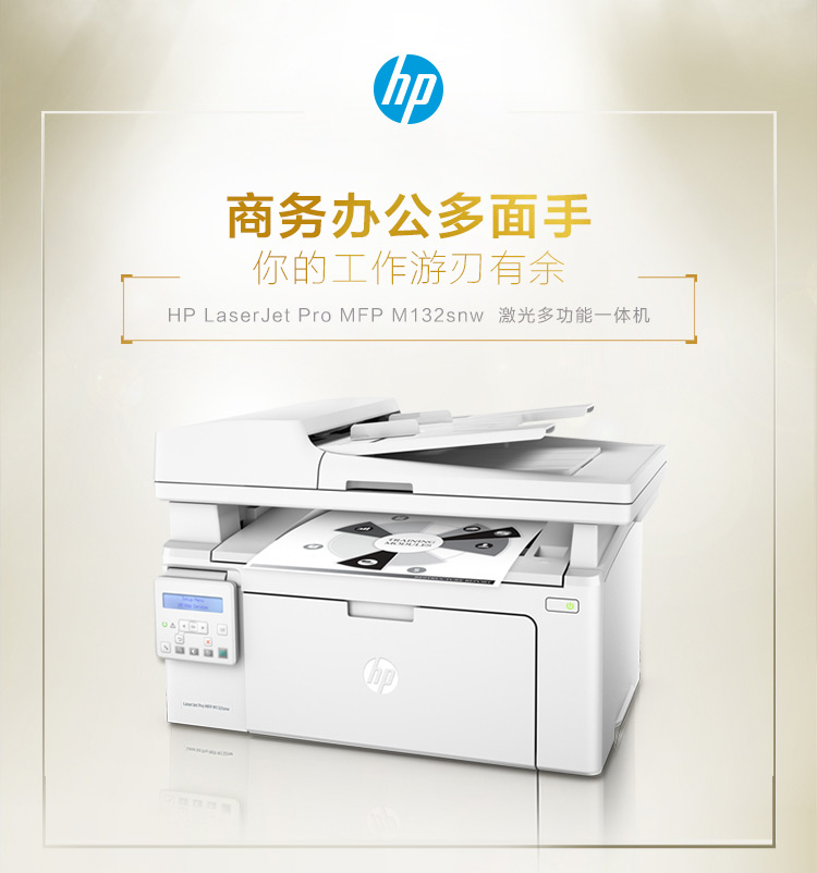 • 商品名称:惠普(HP)M132snw A4黑白激光打印机多功能一体机 打印复印扫描