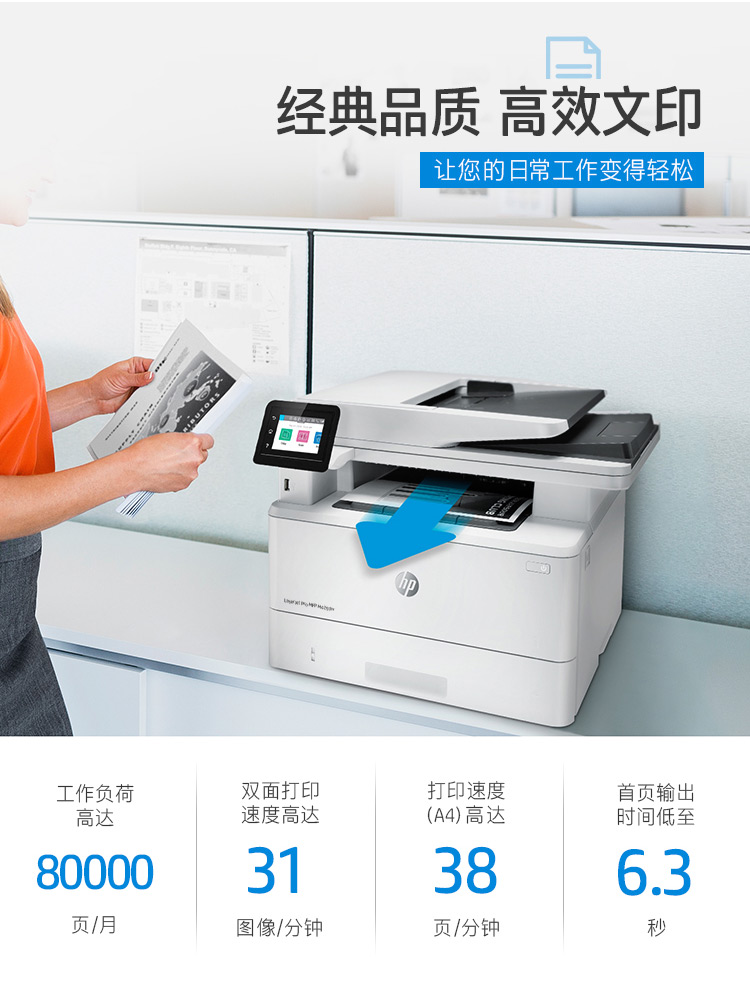 惠普(HP)M429dw A4黑白激光多功能一体机 无线连接高速打印复印扫描 自动双面打印