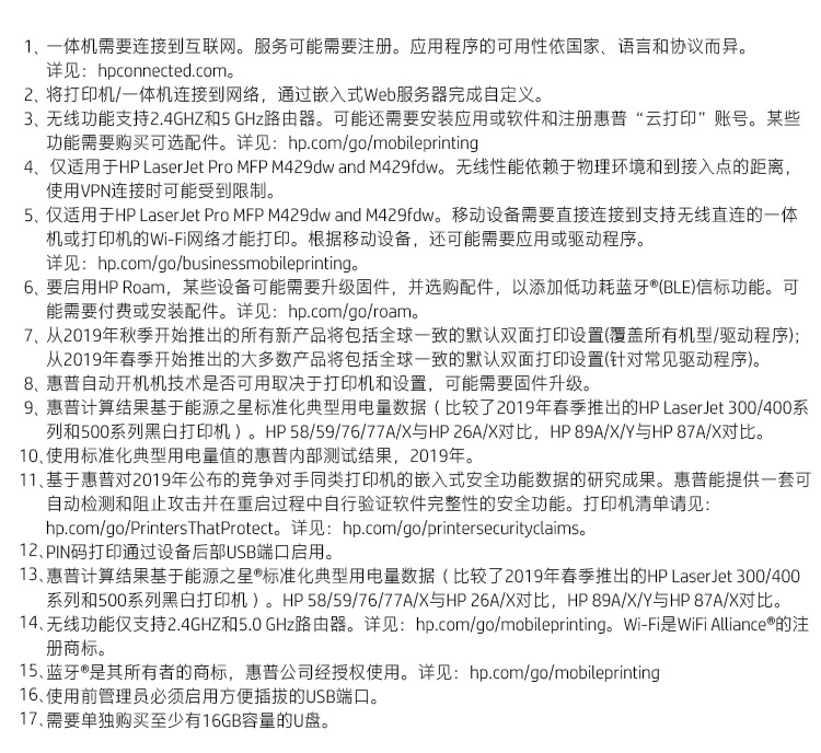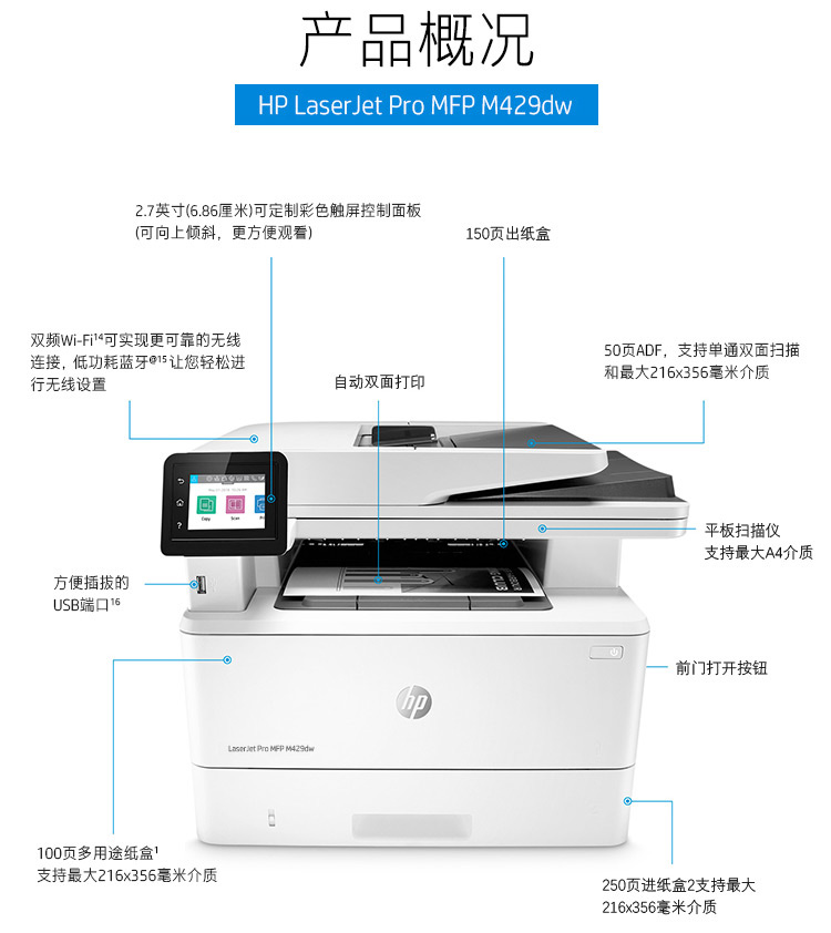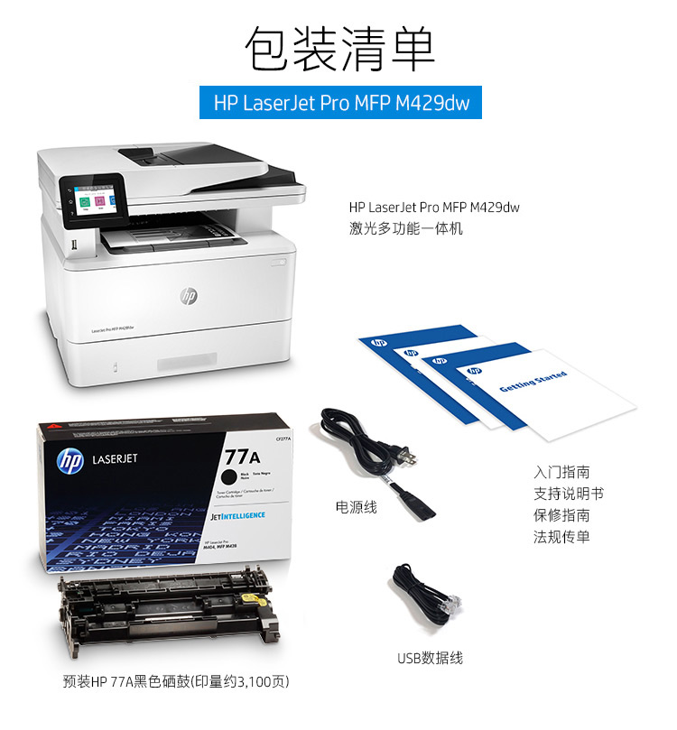 • 商品名称:惠普(HP)M429dw A4黑白激光多功能一体机 无线连接高速打印复印扫描 自动双面打印
