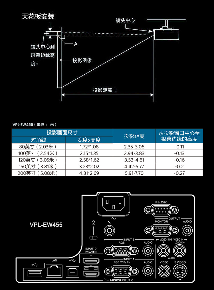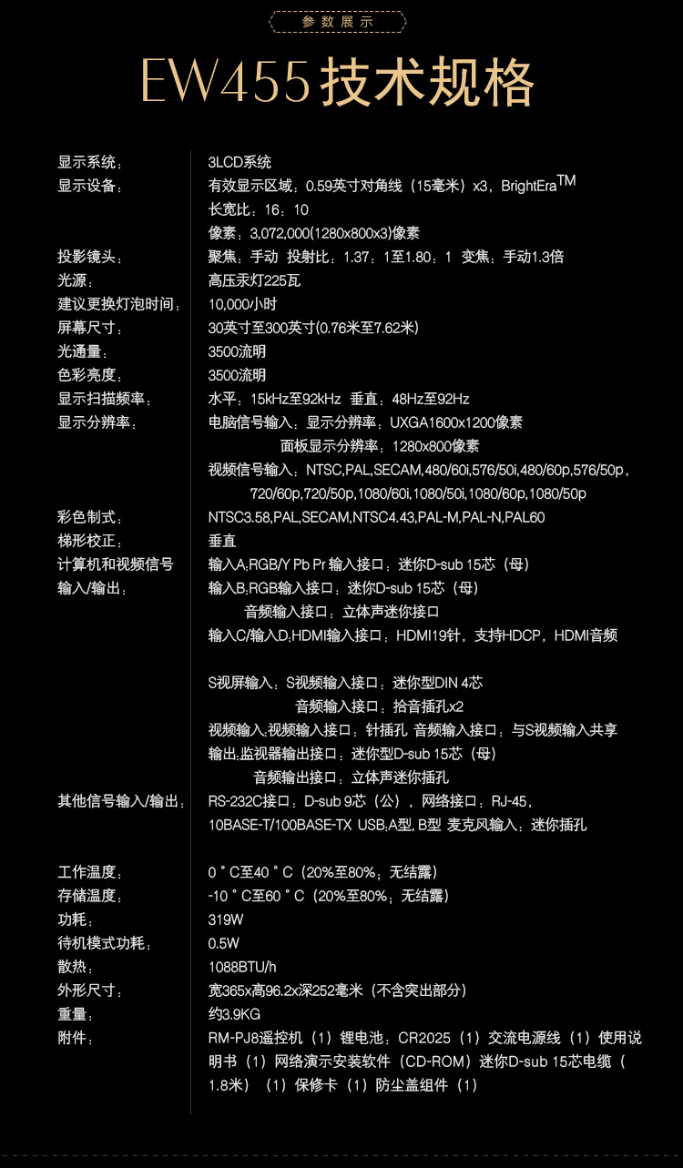• 商品名称:索尼(SONY)VPL-EW455 投影仪 投影机办公(高清宽屏 3500流明)