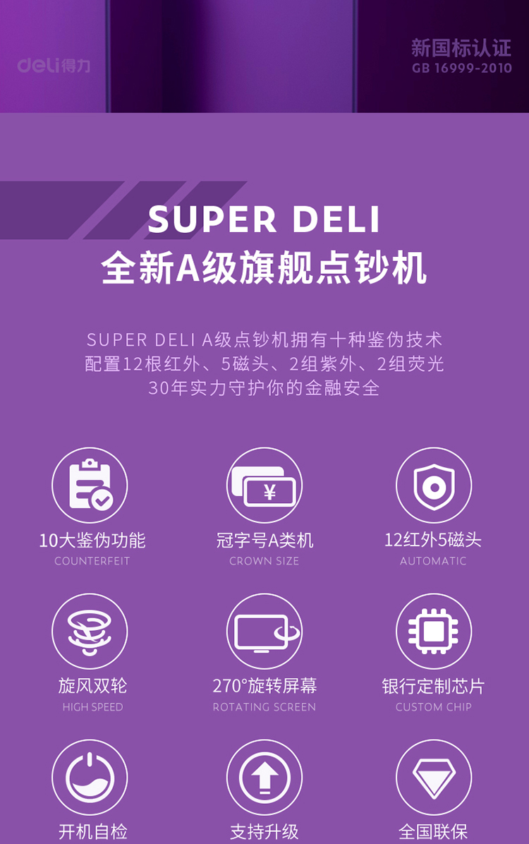• 商品名称:得力(deli)2126 多功能智能点钞机 10重鉴伪人民币