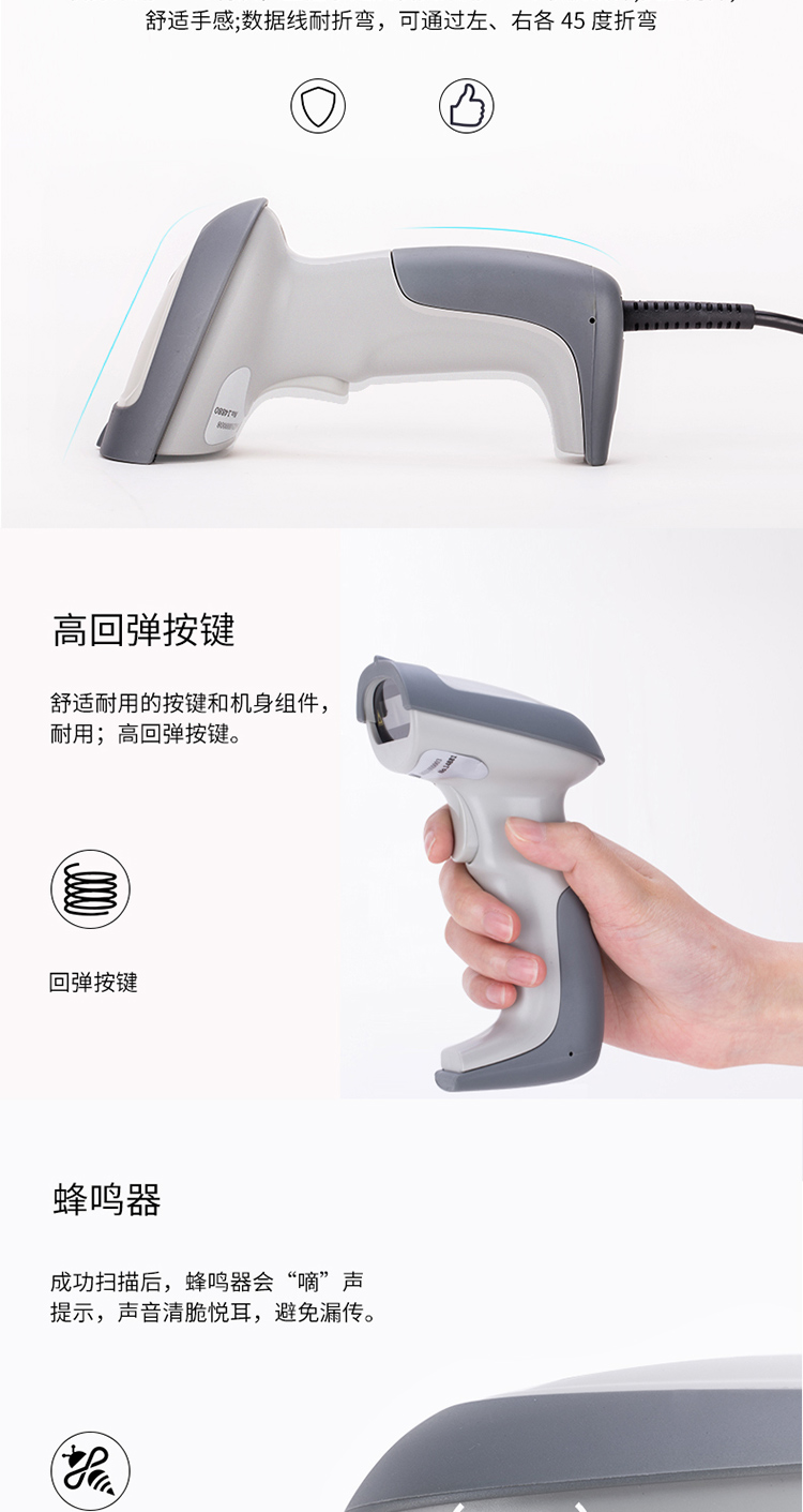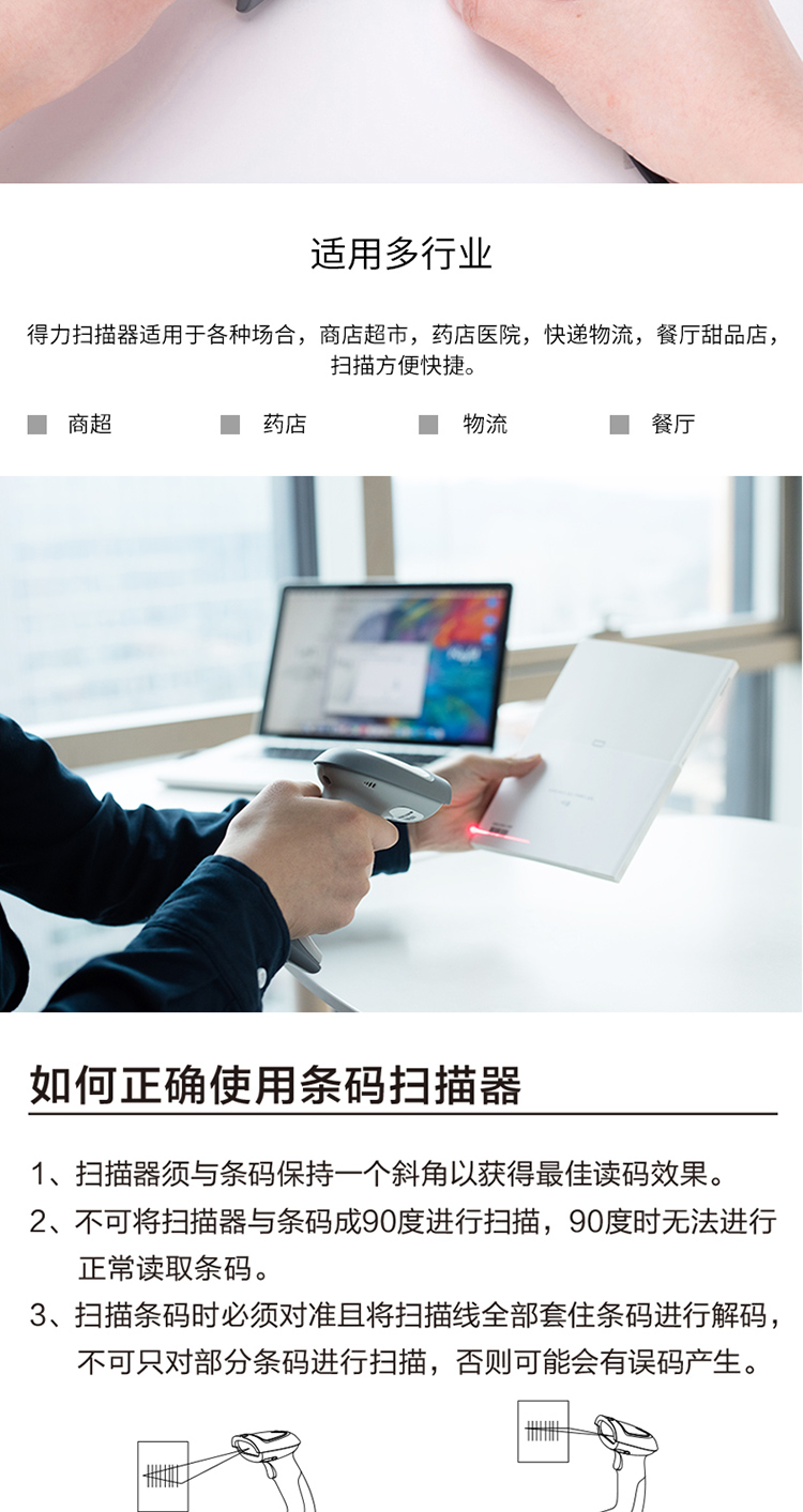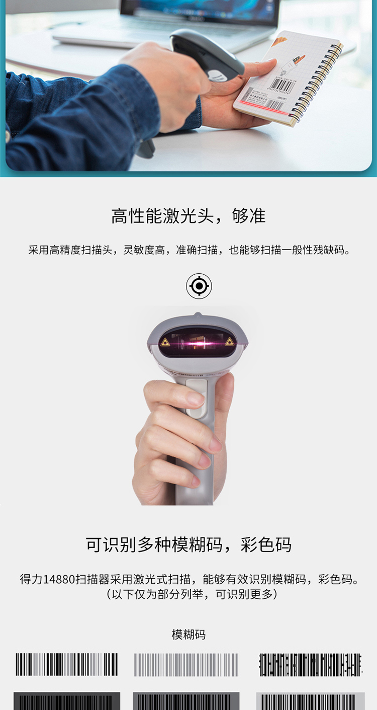 • 商品名称:得力(deli)14880 一维码扫描枪扫码枪商品条码枪 有线USB(白色)
