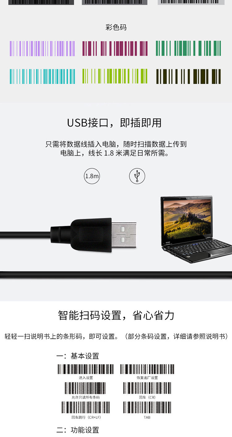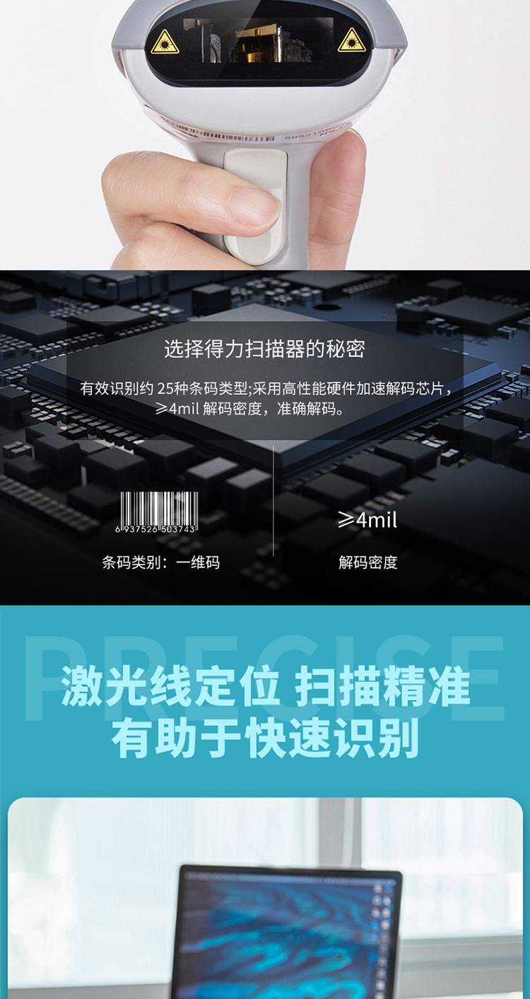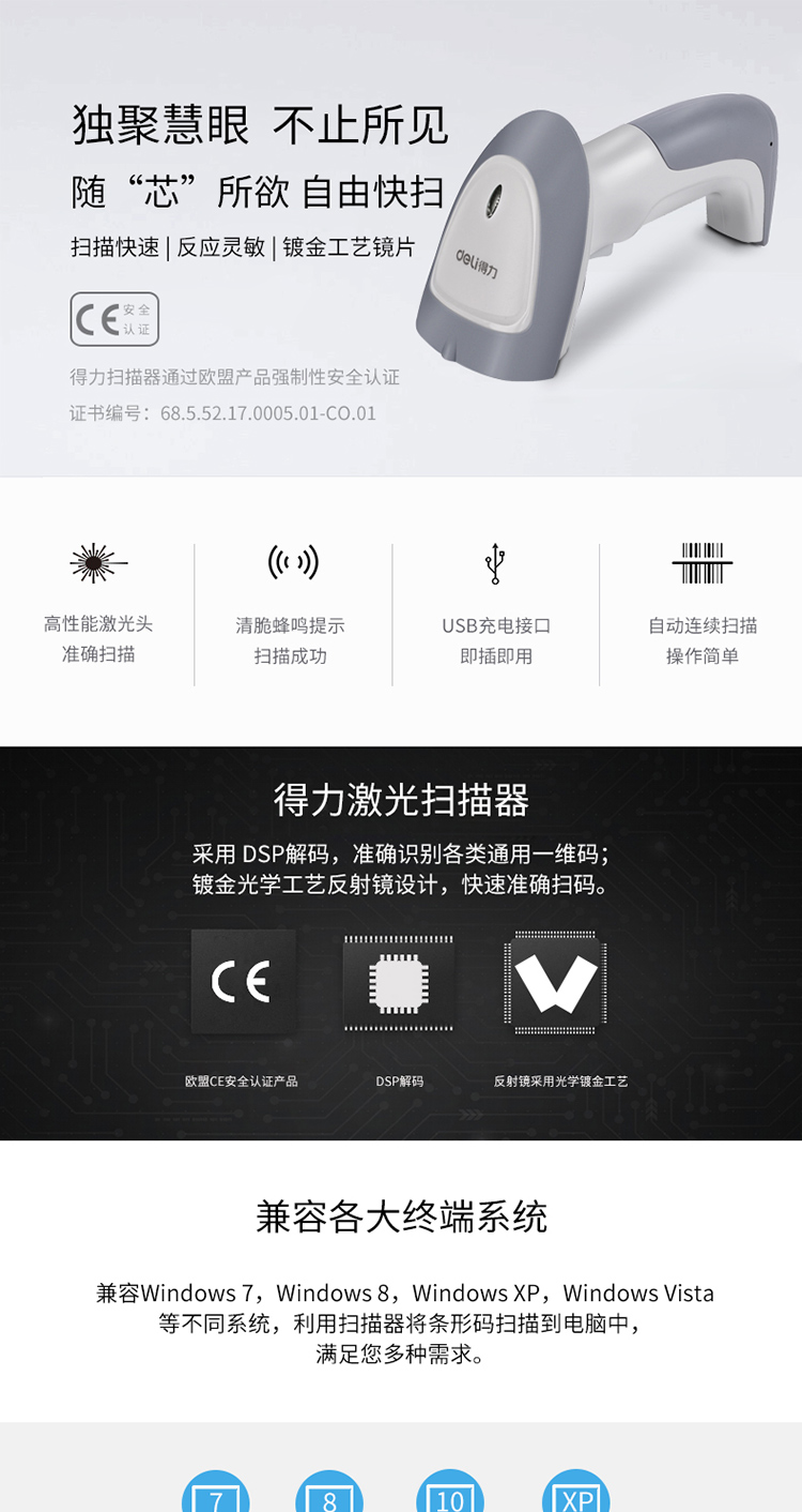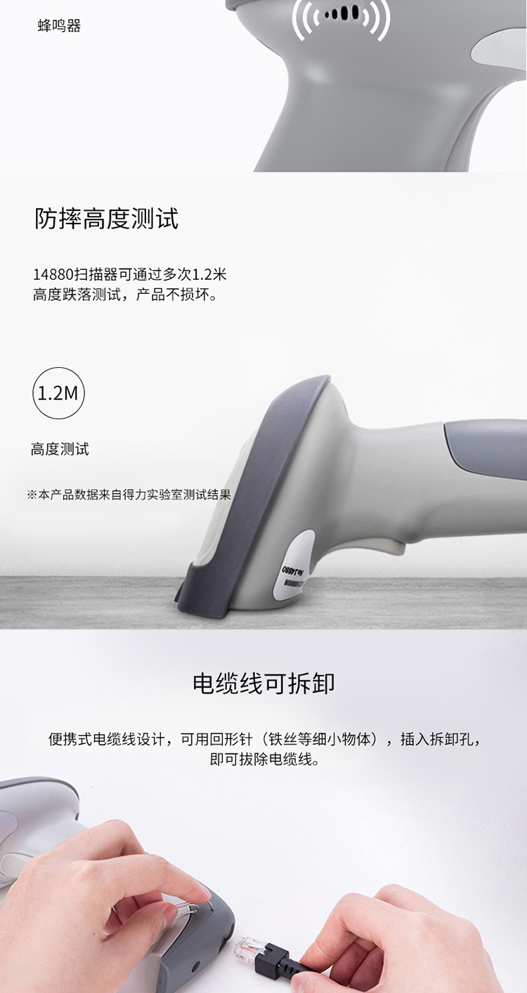 • 商品名称:得力(deli)14880 一维码扫描枪扫码枪商品条码枪 有线USB(白色)
