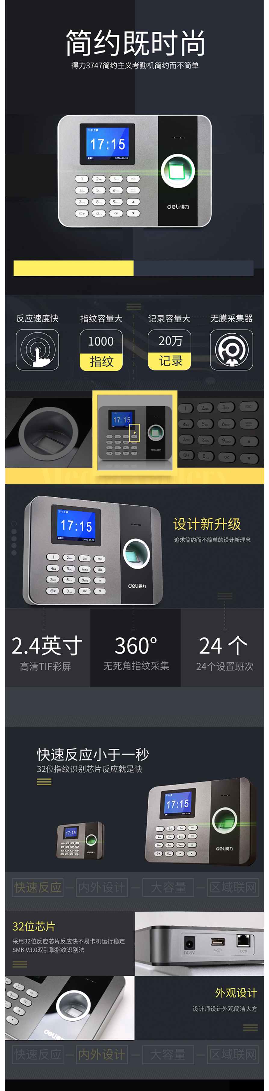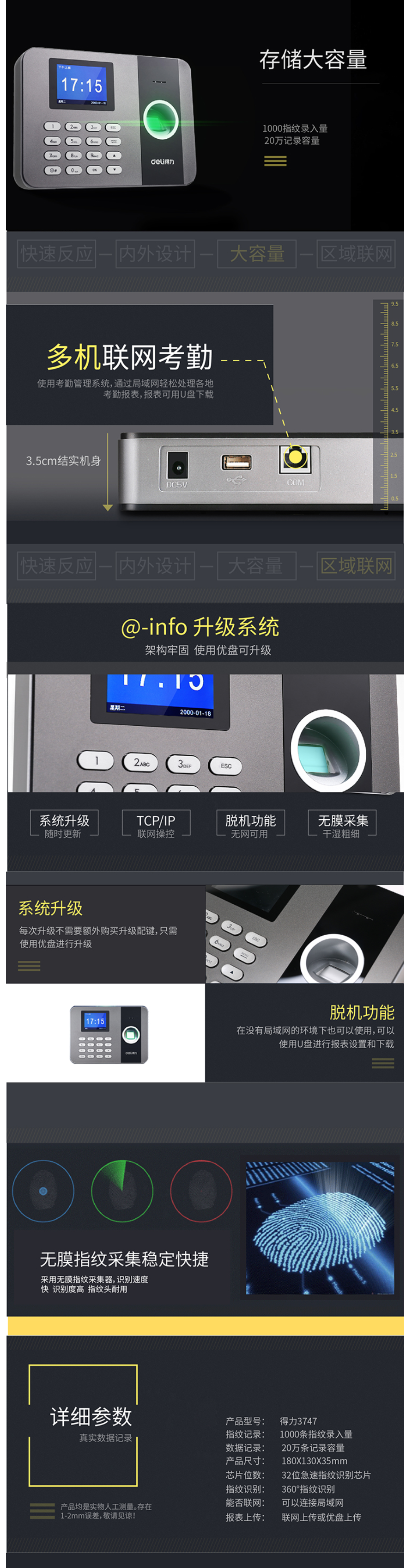 • 商品名称:得力(deli)3747 TCP/IP指纹考勤机 局域网指纹打卡机