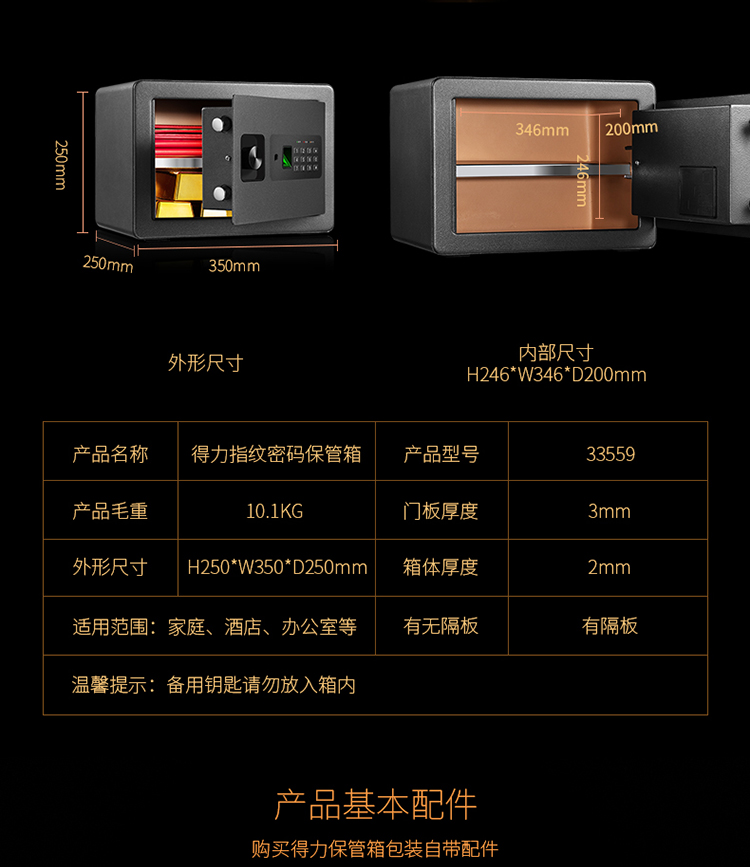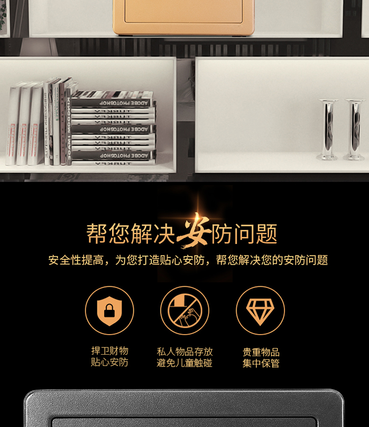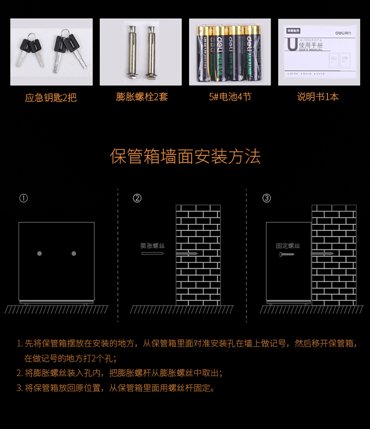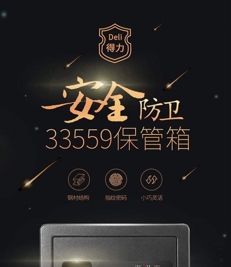 • 商品名称:得力(deli)33559 小型密码保险柜保险箱 高25CM指纹 可入墙入柜 黑色