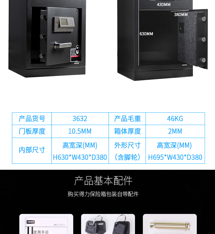 • 商品名称:得力(deli)3632 电子密码保险箱保险柜 高63CM