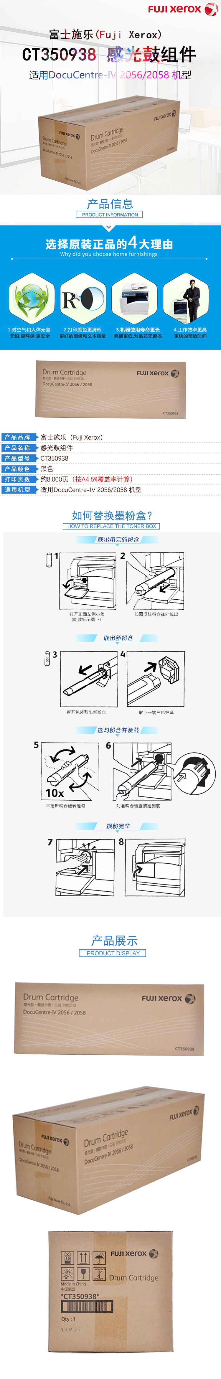 • 商品名称:富士施乐(Fuji Xerox) CT350938 感光鼓组件黑色 适用于施乐2056/2058 约65000页