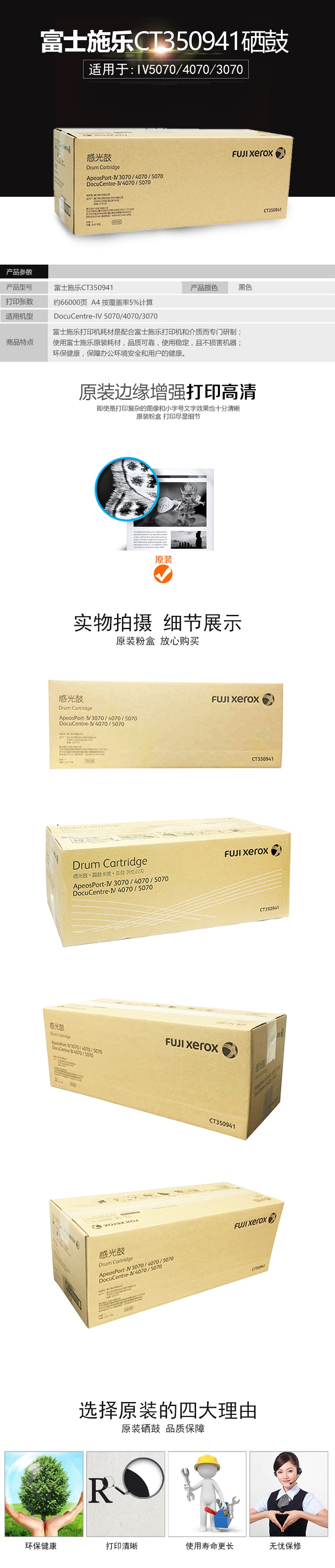 • 商品名称:富士施乐(Fuji Xerox) CT350941 4代感光鼓黑色 适用于施乐IV4070/5070 约65000页