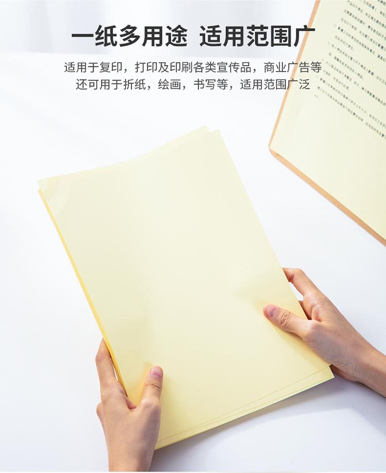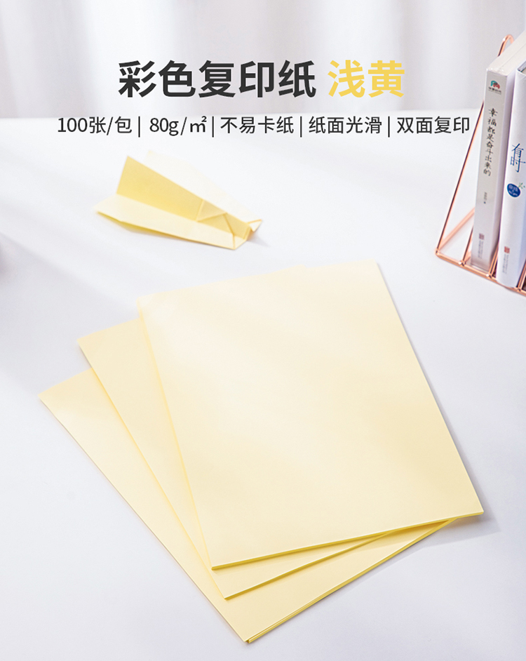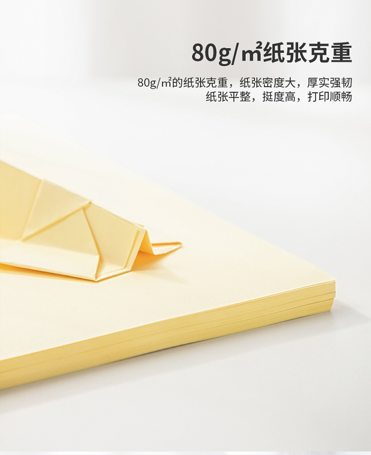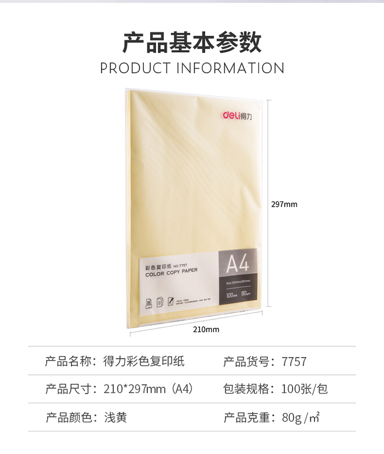 • 商品名称:得力(deli)7757 A4浅黄色复印纸 彩色打印纸手工折纸卡纸 80g100张/包