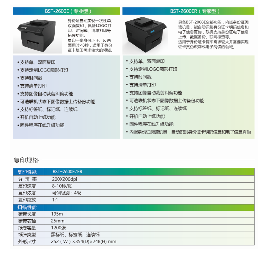 • 商品名称:新北洋(SNBC) BST-2600E 身份证打印机 证卡双面复印