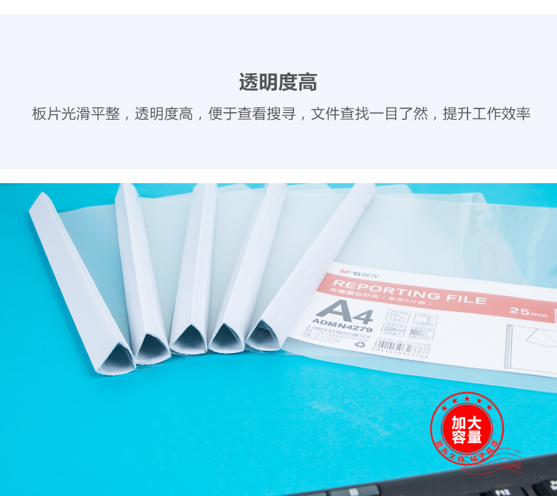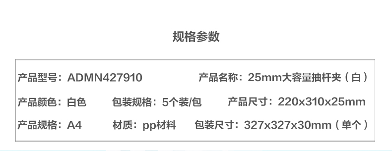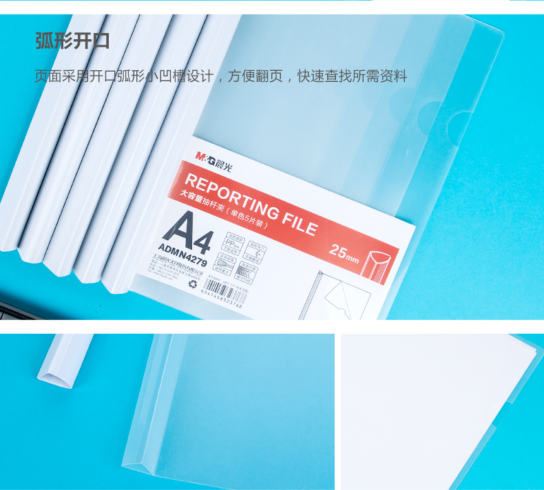 • 商品名称:晨光(M&G) ADMN4279 大容量抽杆夹白色文件整理夹资料整理册25mm