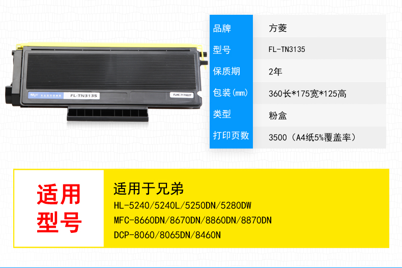• 商品名称:方菱(FangLing) FL-TN3135 粉盒 适用于兄弟 3175 HL-5240 L 5250DN 5280DW 8660DN